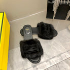 FENDI BAGUETTE MINK SLIDE SLIPPER IN BLACK FUR