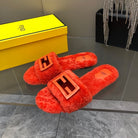FENDI BAGUETTE SLIDE SLIPPERS IN CHERRY RED WOOL