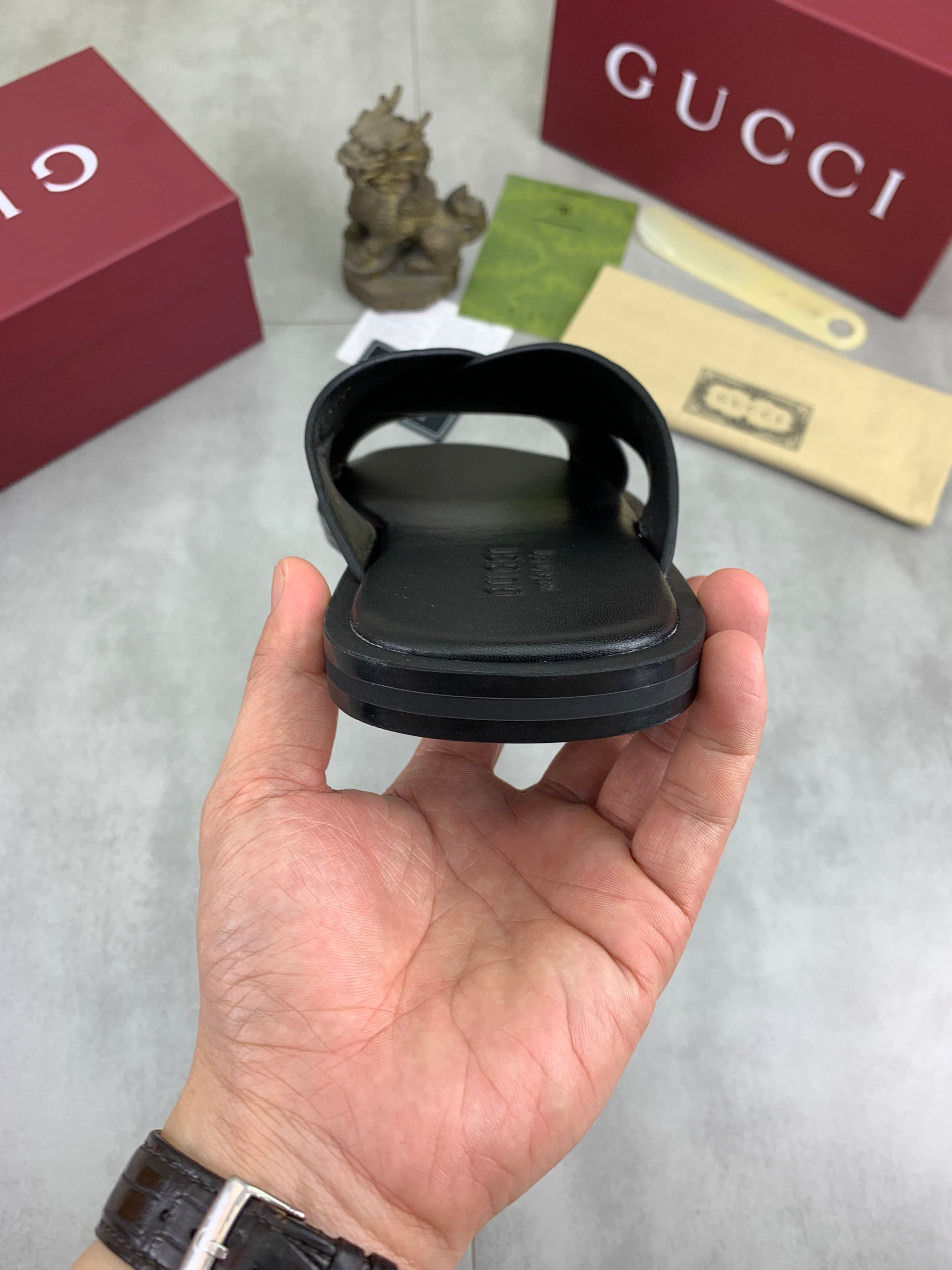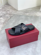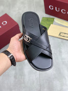GG Men's 25 Sandals Slide Black Cowhide 738474
