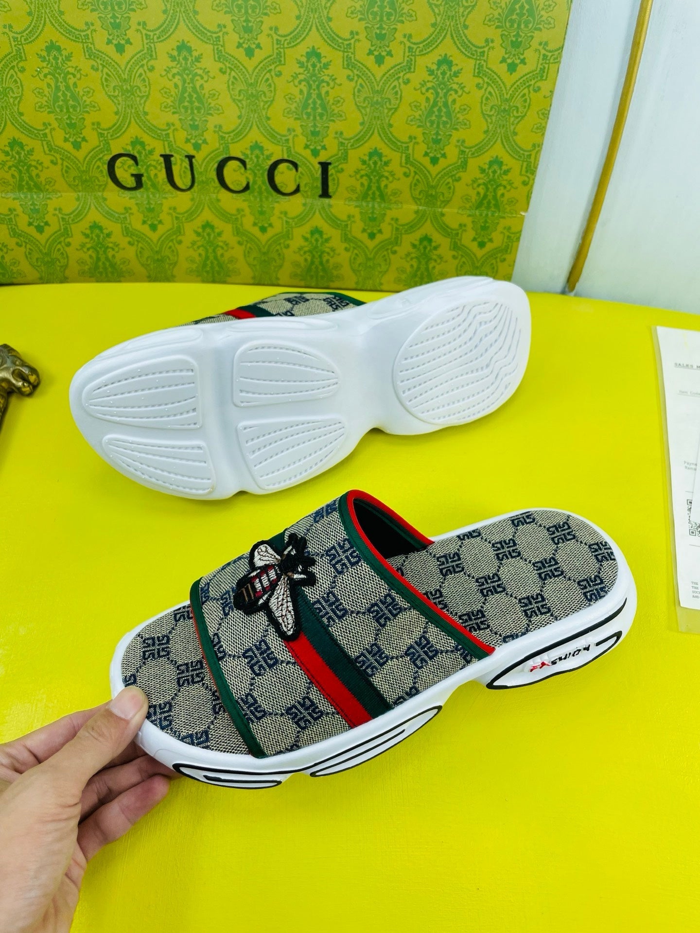 GG Men's Bee Slide Brown Gingham Fabric 538693