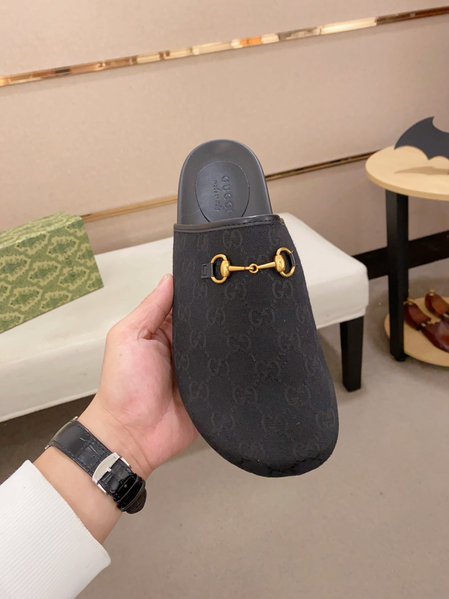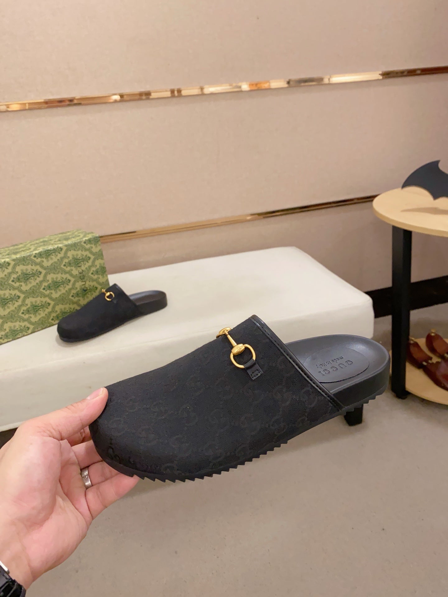 GG Men's Mule Black Printed Fabric 560358
