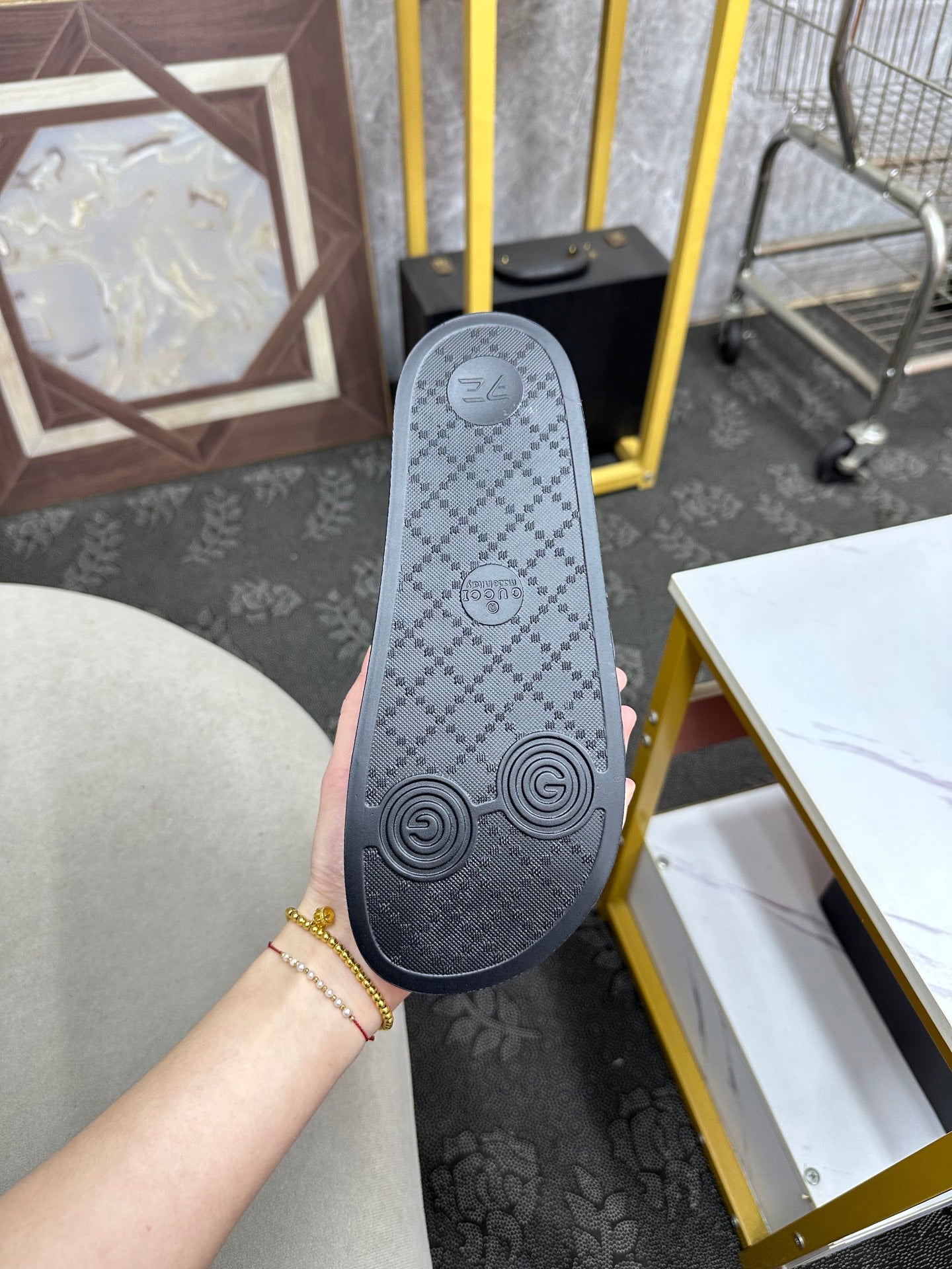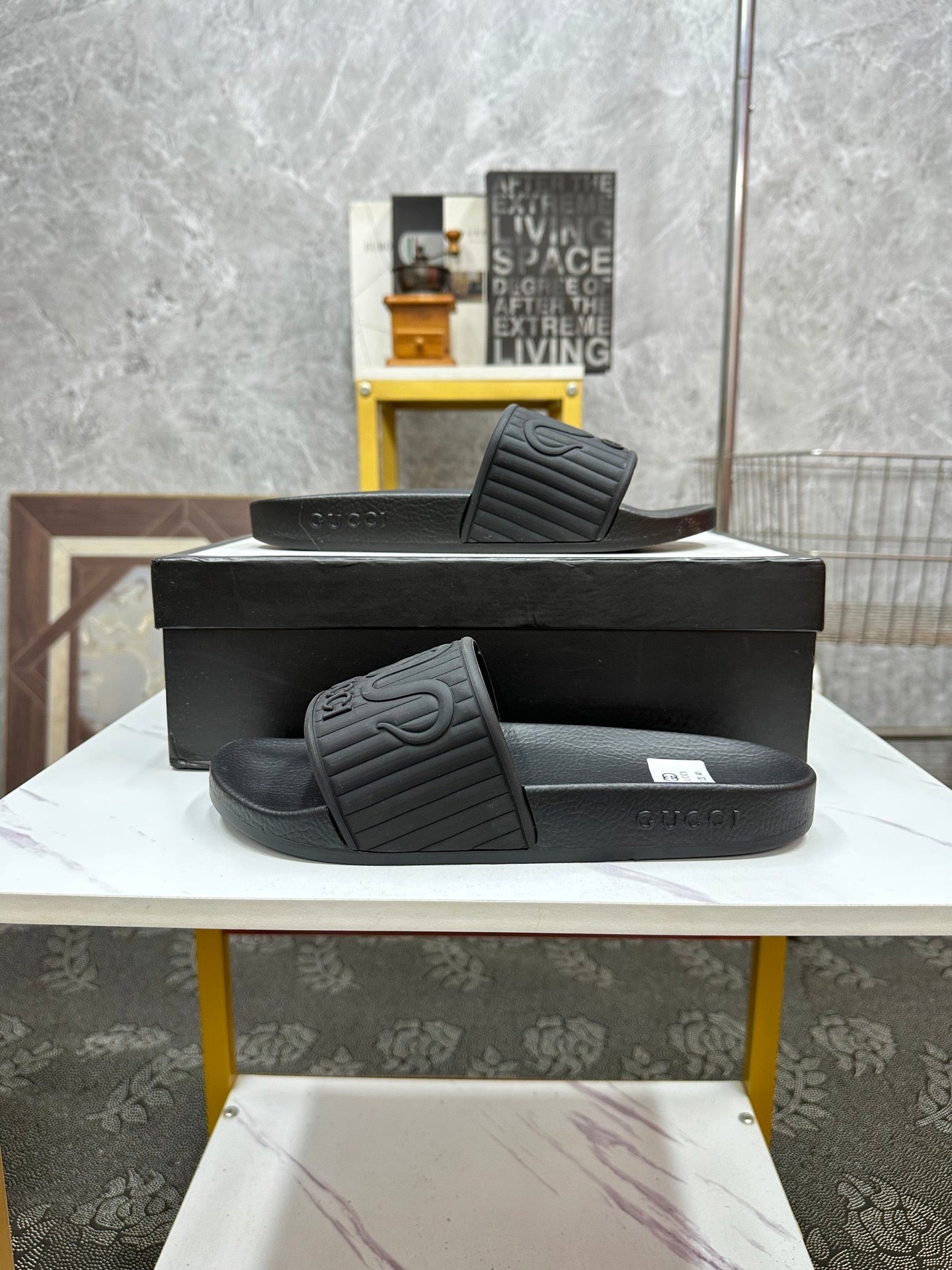 GG Men's Slide Black Sheepskin Rubber 540099