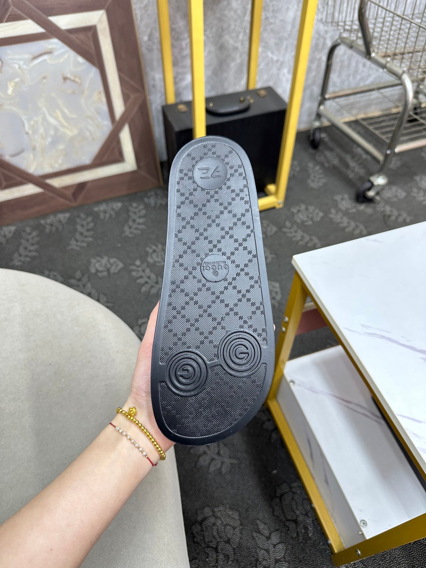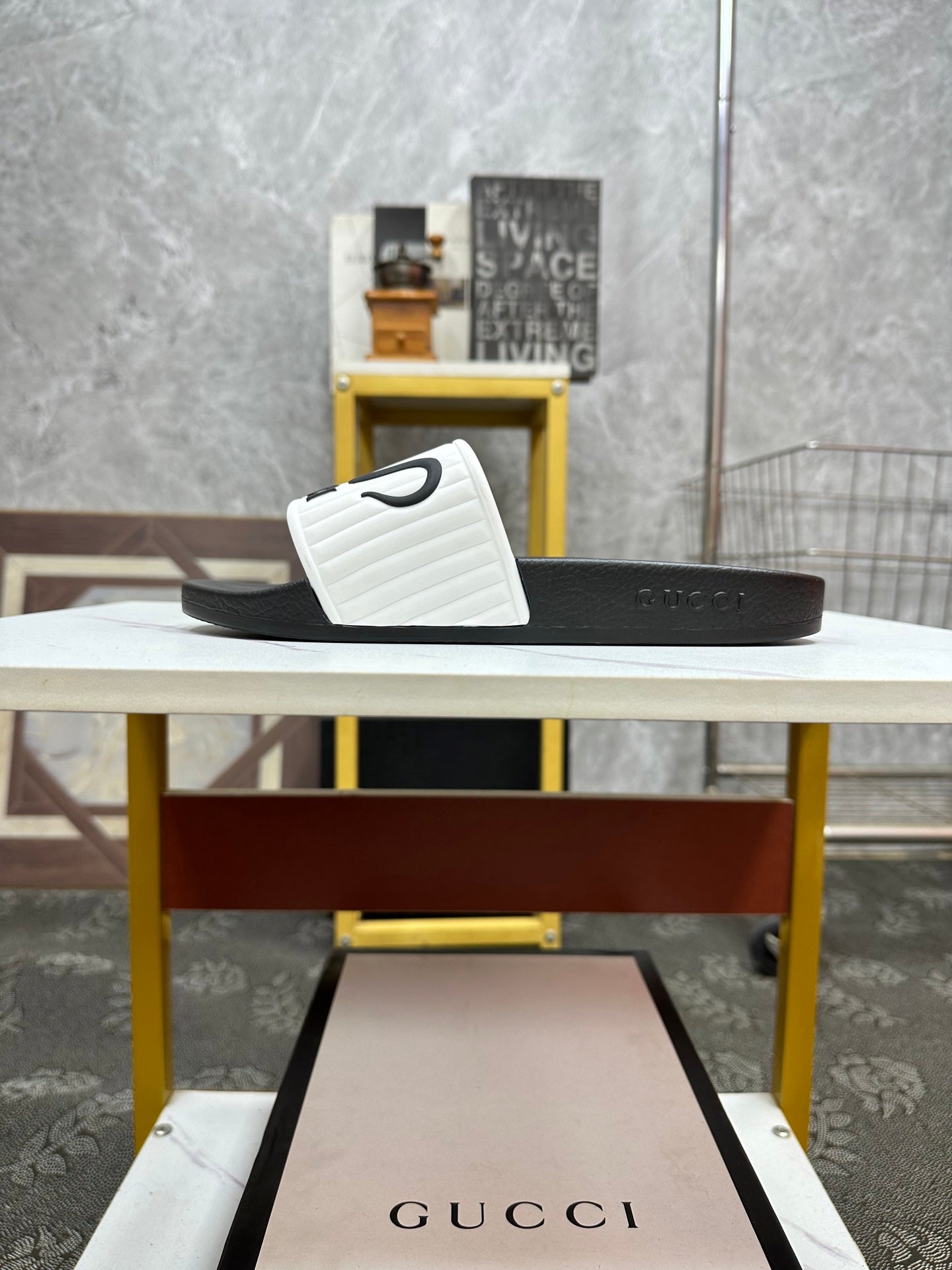 GG Men's Slide White Sheepskin Rubber 540097