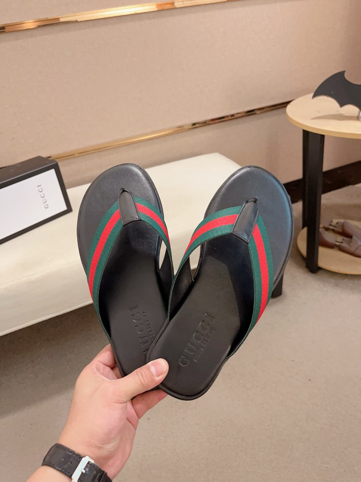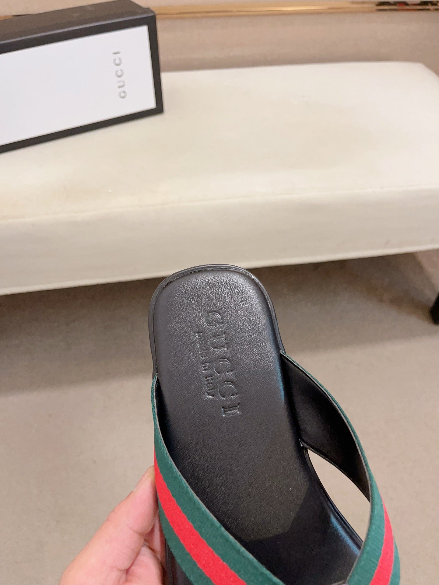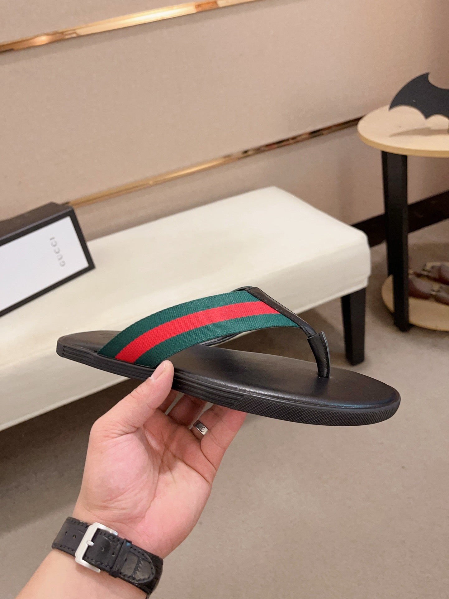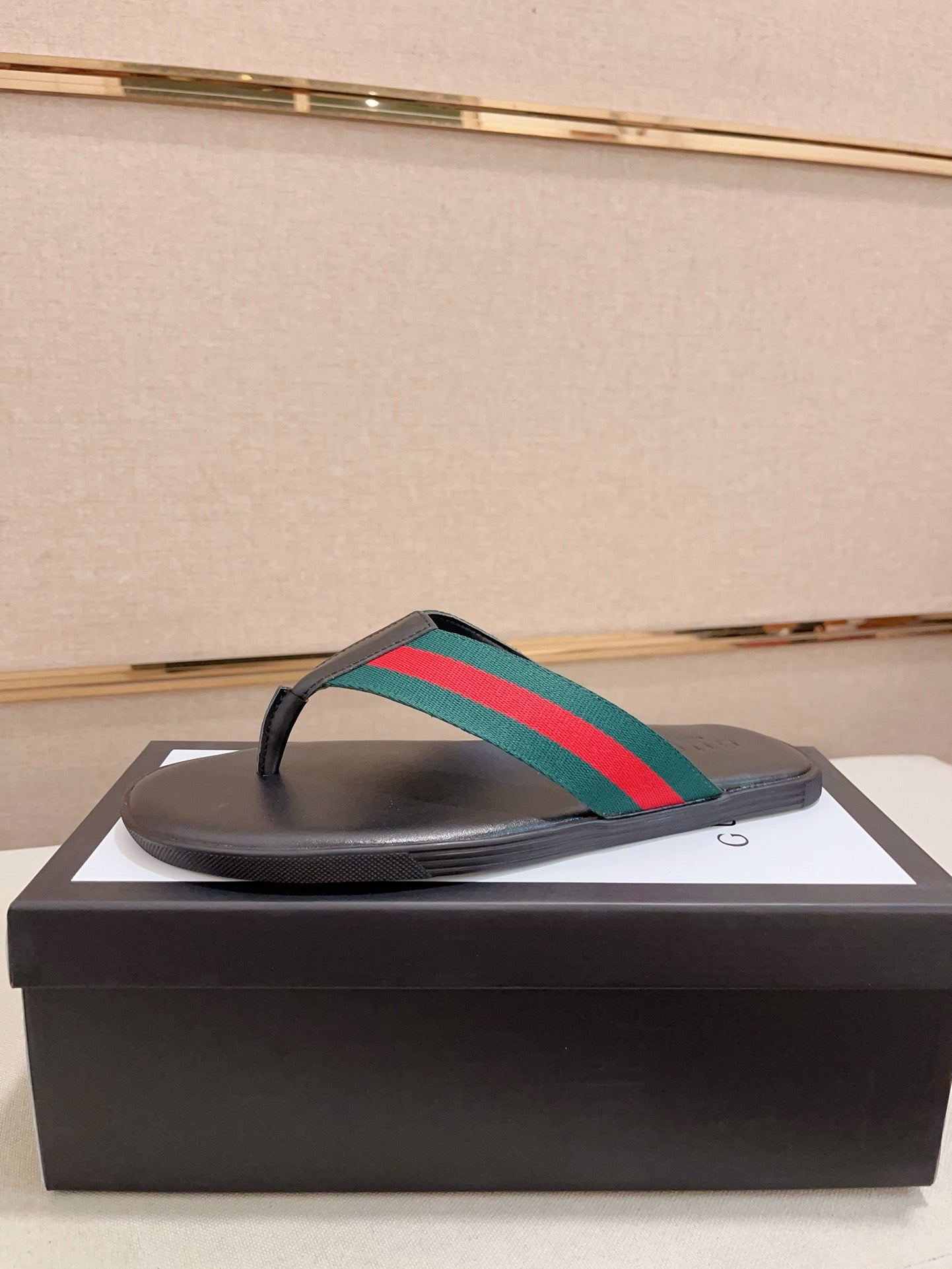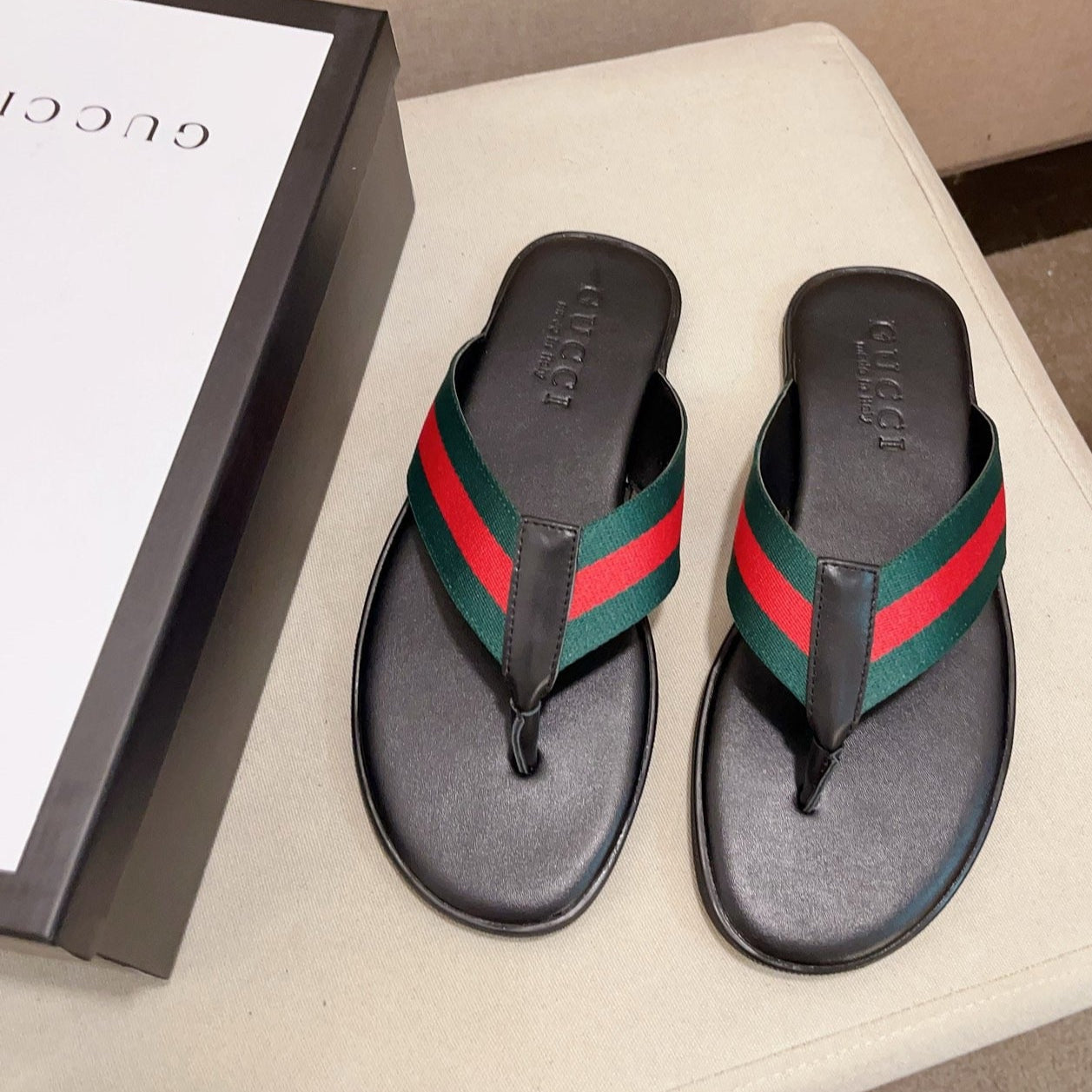 GG Men's Thong Web Black Green Cowhide 554611