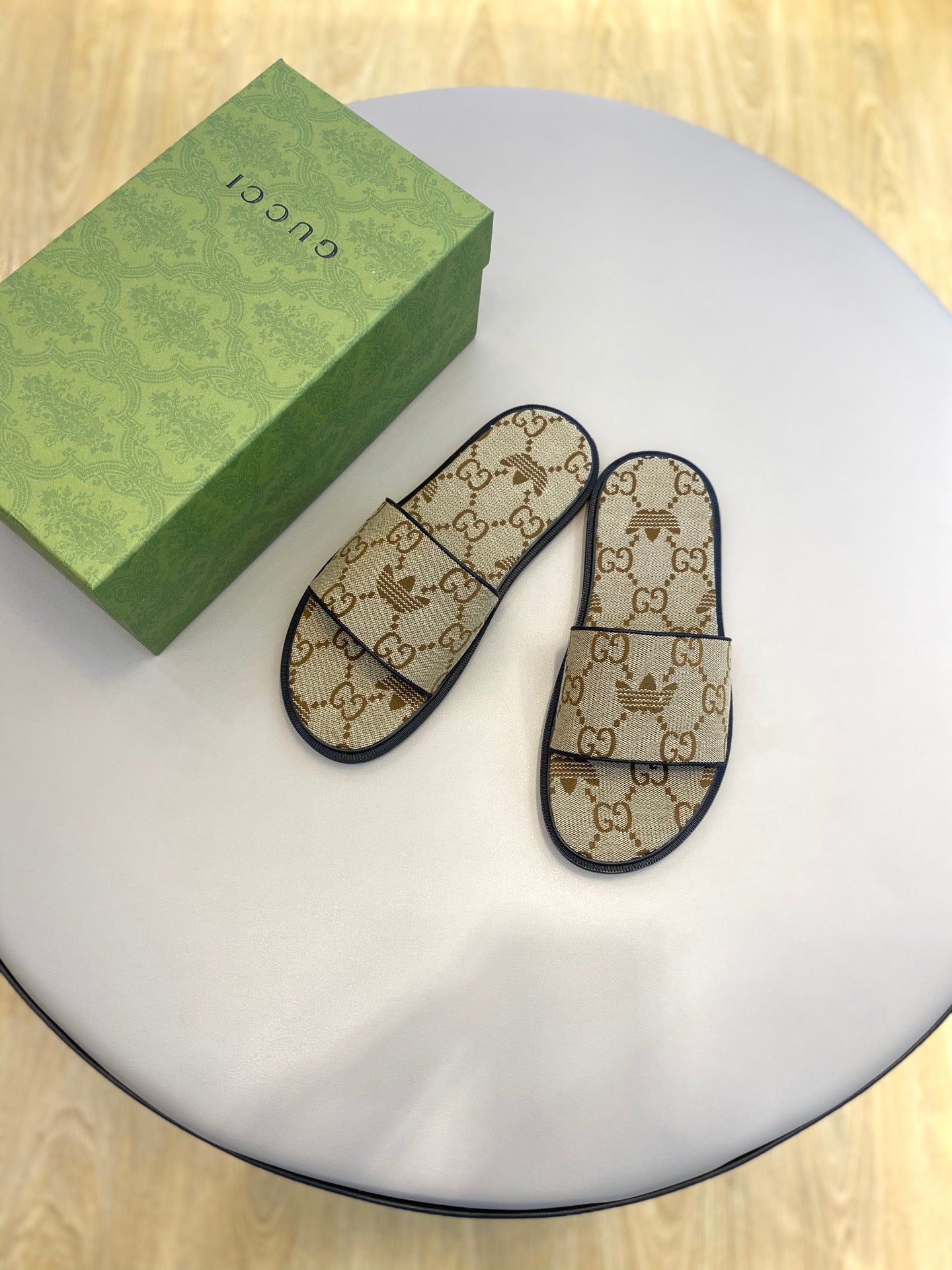 GG x Adidas Men's Sandals Slide Brown Canvas 558907