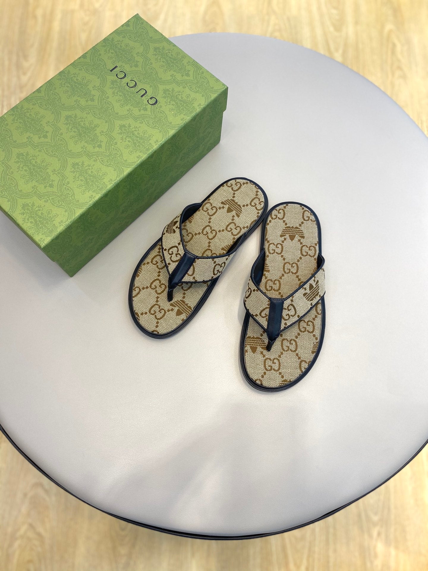 GG x Adidas Men's Thong Sandals Brown Canvas 558907
