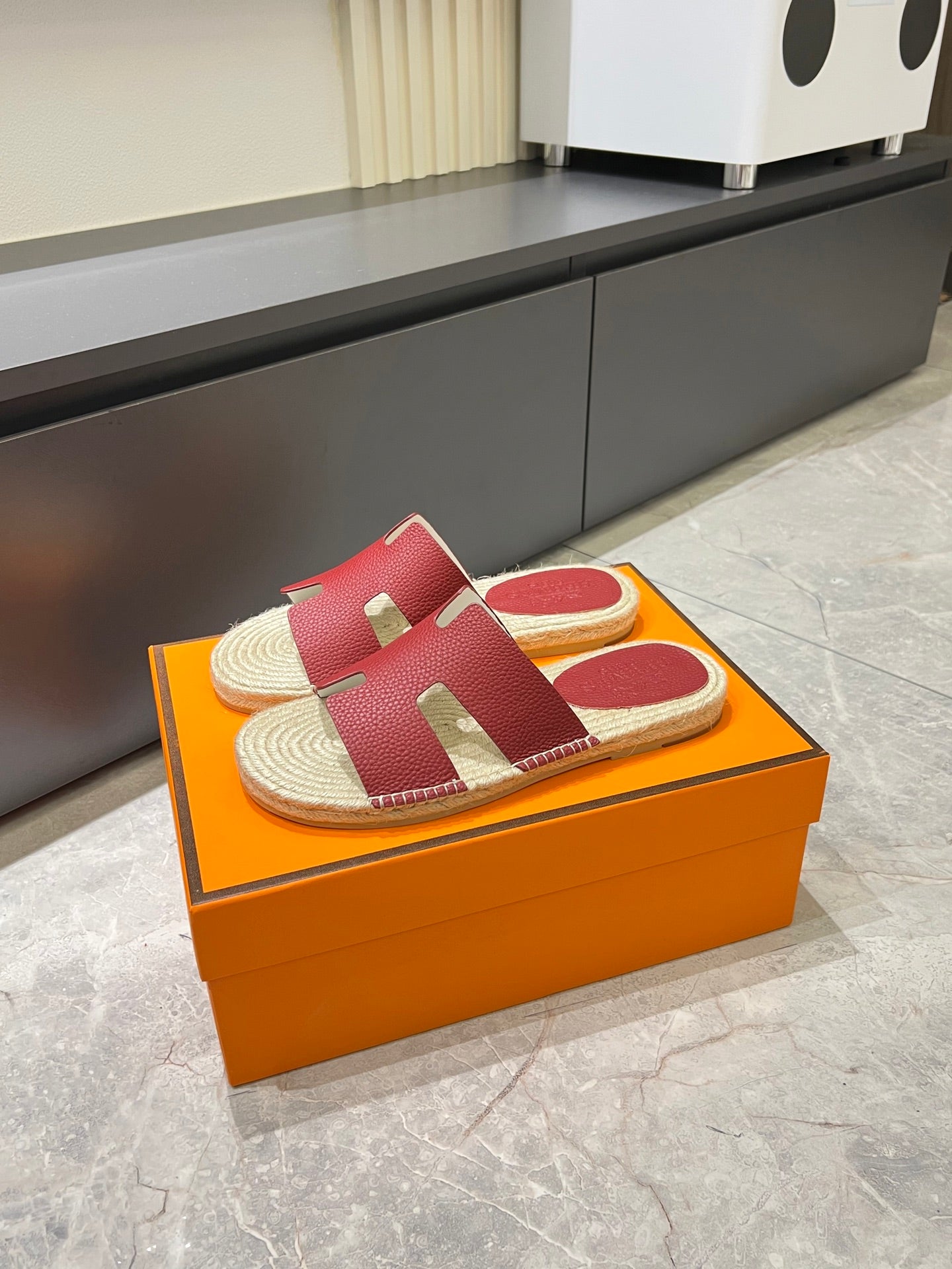 HM Men's Antigua Espadrille Slide Red Lambskin 590816