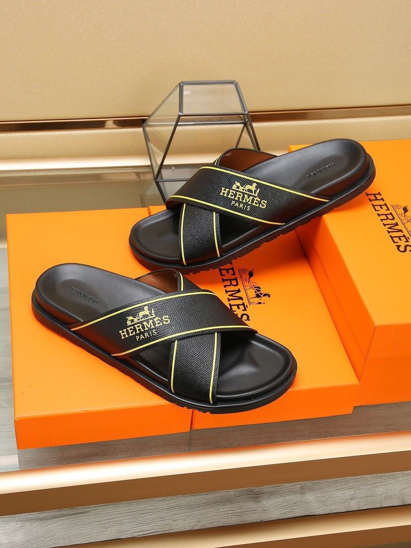 HM Men's Cross Strap Slide Black Cowhide 544100