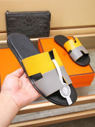 HM Men's Izmir Slide Yellow Grey Cowhide 685831