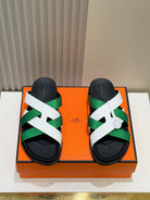 HM Men's Kazimir Slide Green White Calfskin 562776