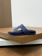 HM Men's Slide Navy Blue Cowhide Leather 588997
