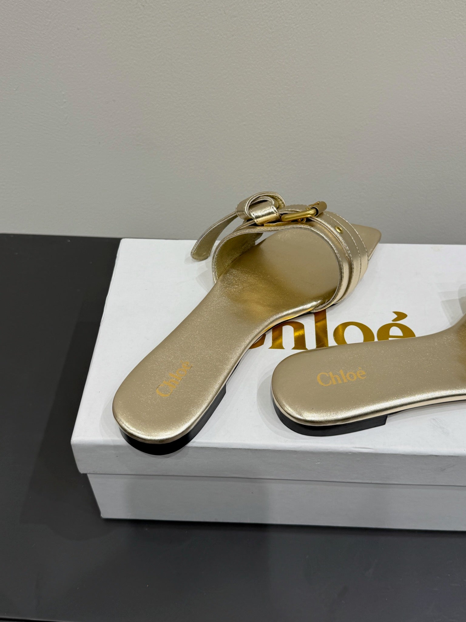 Loewe 25 Bow Metal Buckle Slide Gold Cowhide