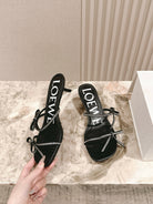 Loewe 25 Petal Bow Sandals Black Cowhide PVC