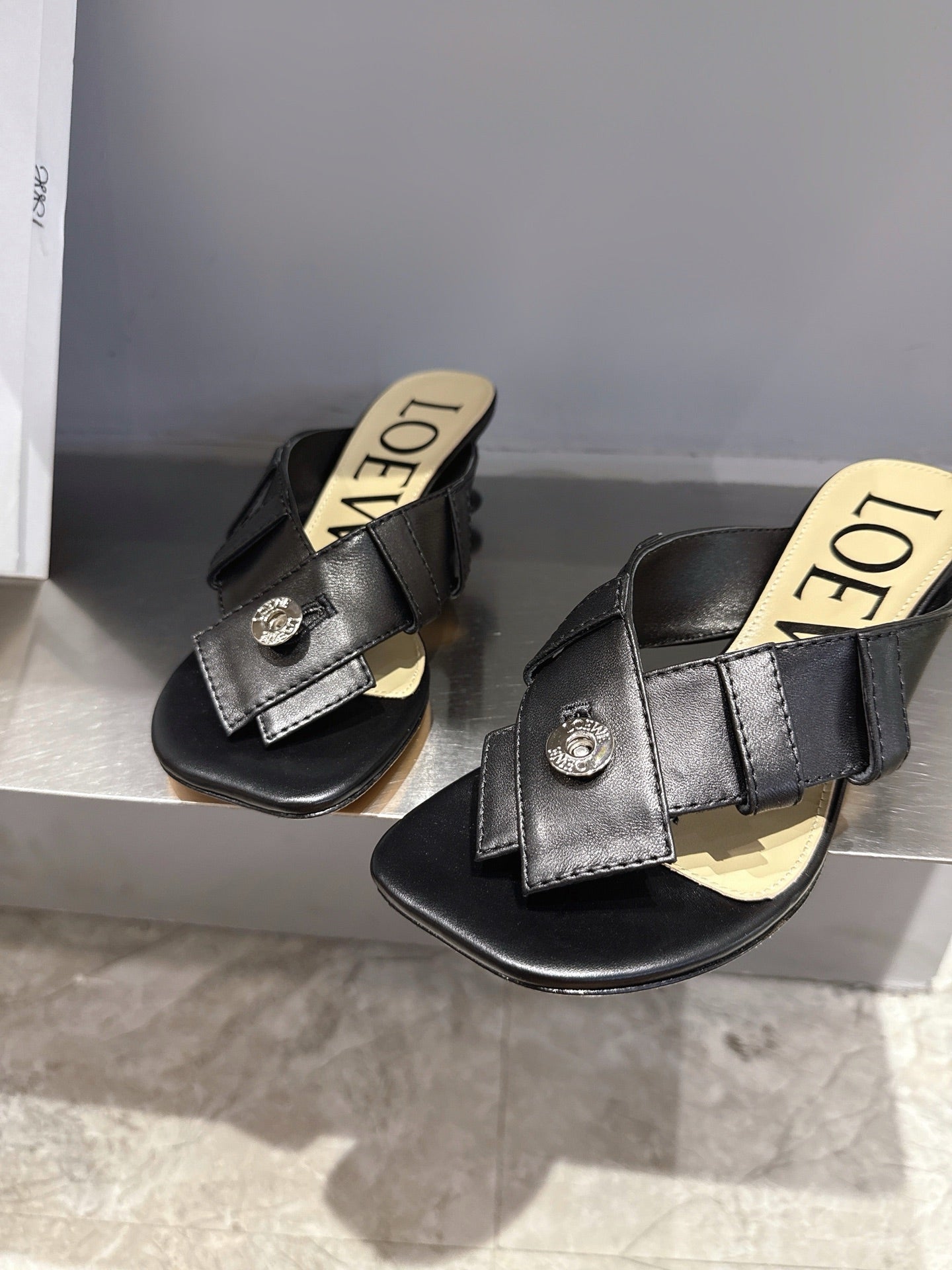 Loewe 25 Toy Panta Toe Thong 5cm Black Sheepskin