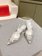 RC 25C Slingback Diamond High Heel 8cm White Silk Rhinestones 268078