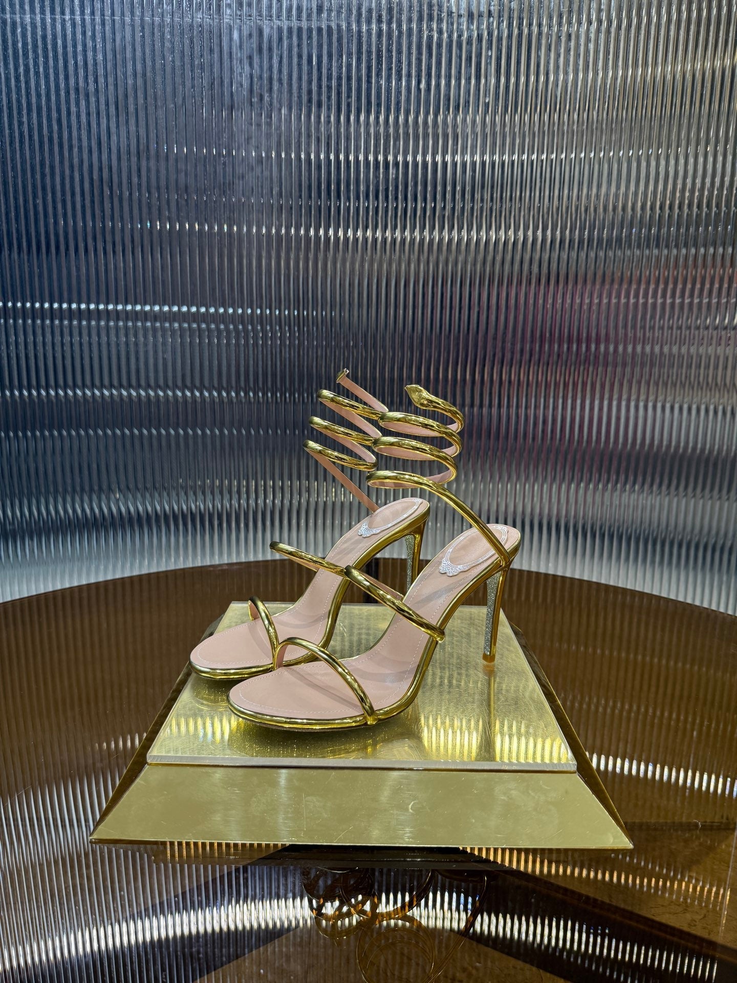 RC 25C Snake-Shaped Sandals 9.5cm Gold Sheepskin 310629
