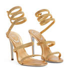 RC Cleo 105mm Crystal-Embellished Sandals Beige Satin Leather