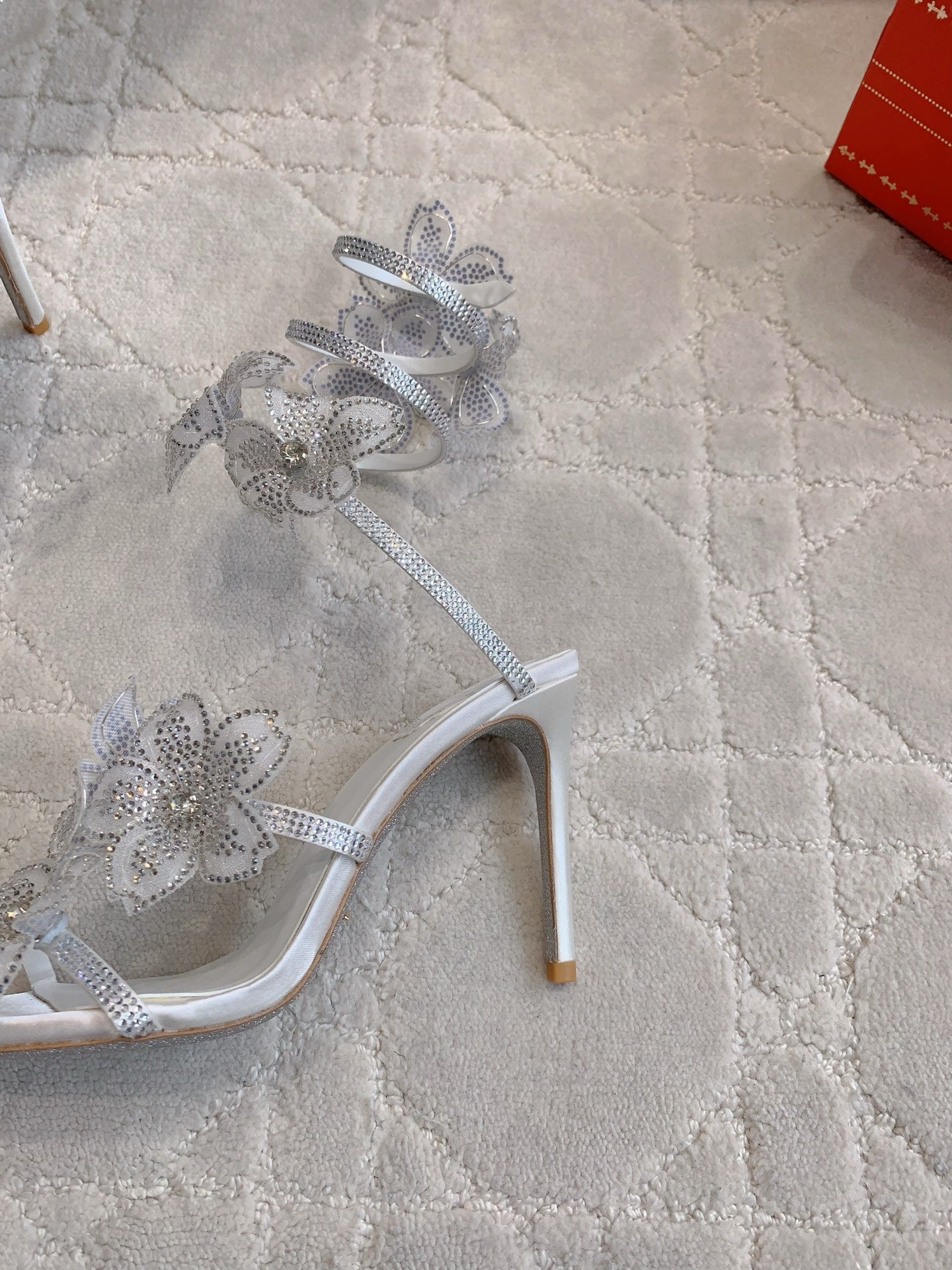 RC Flower Sandals Silver Sheepskin Rhinestones 328468