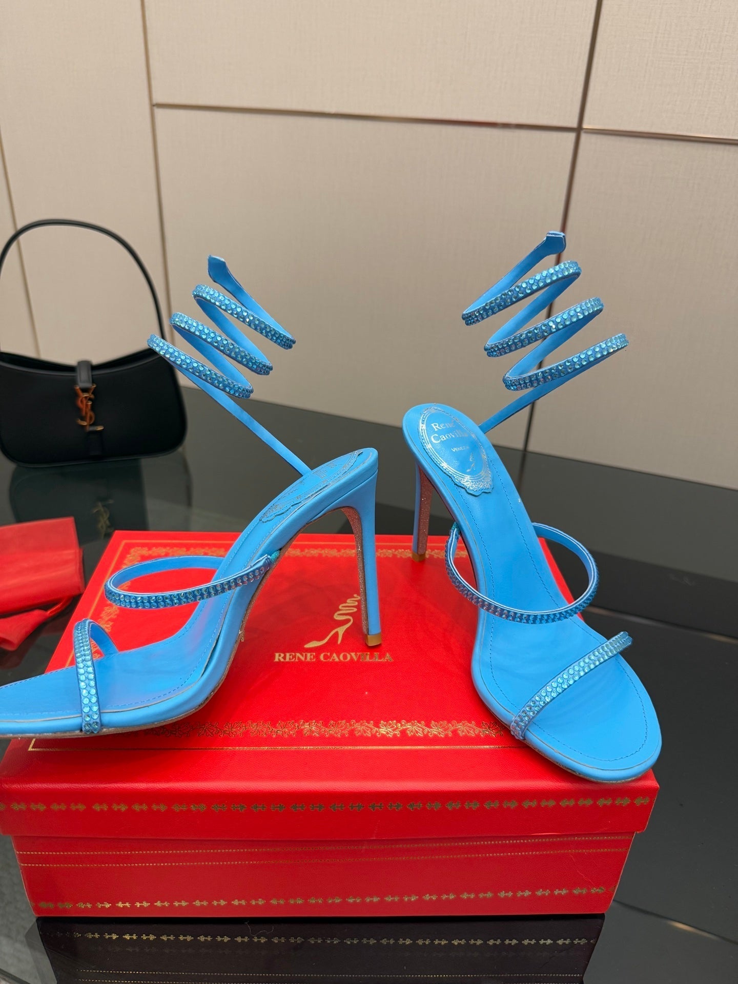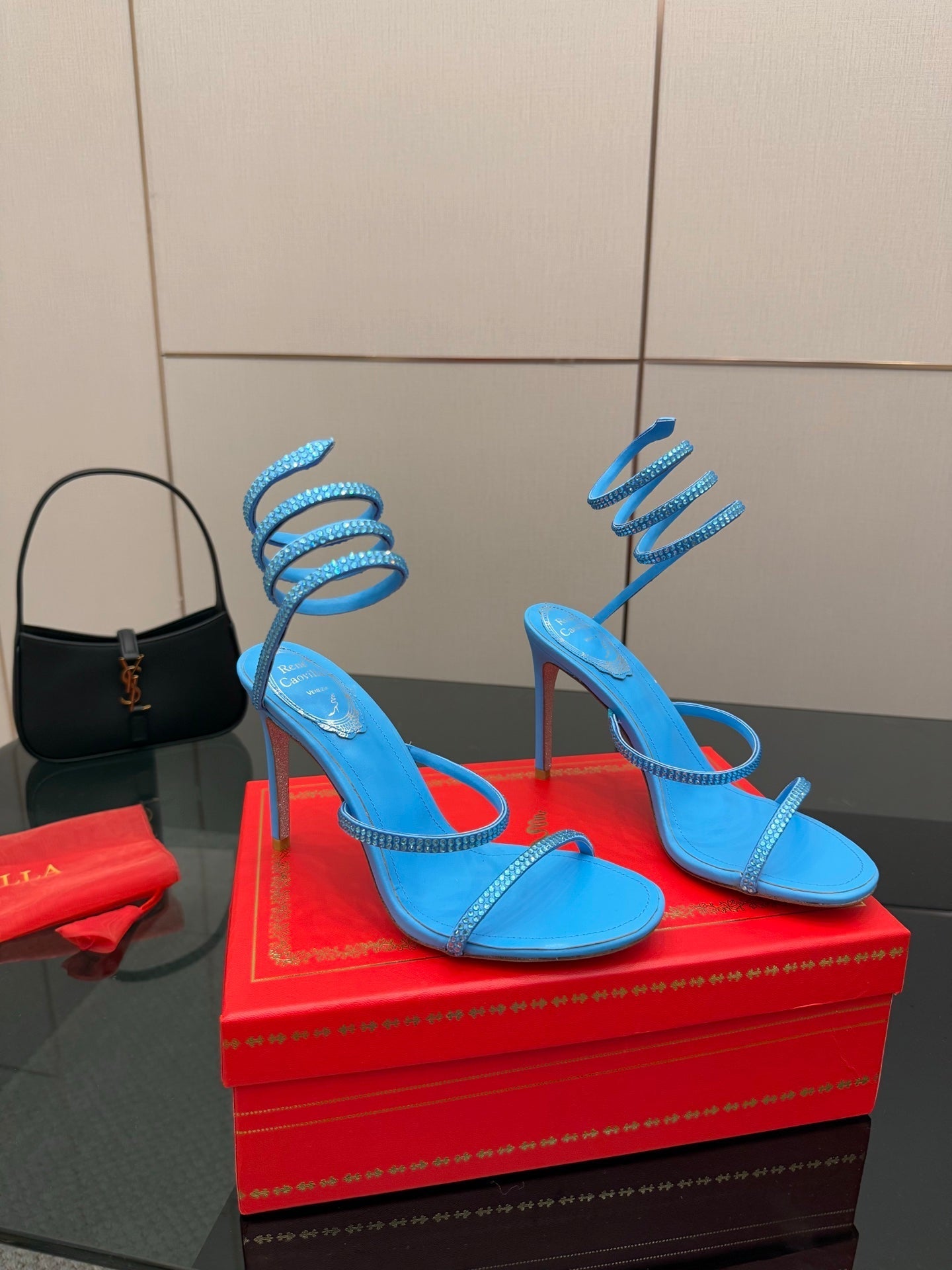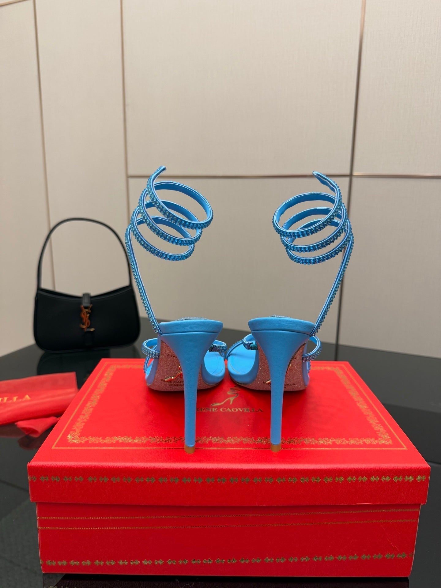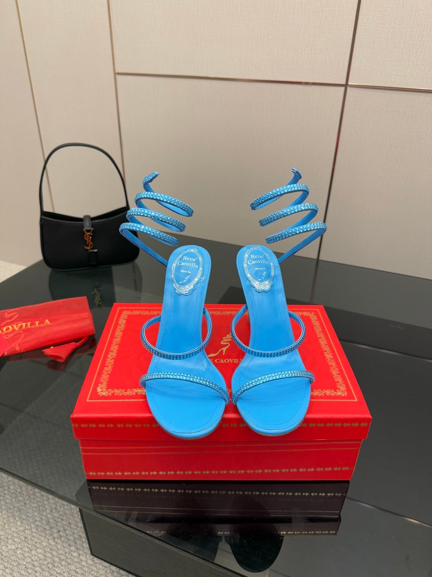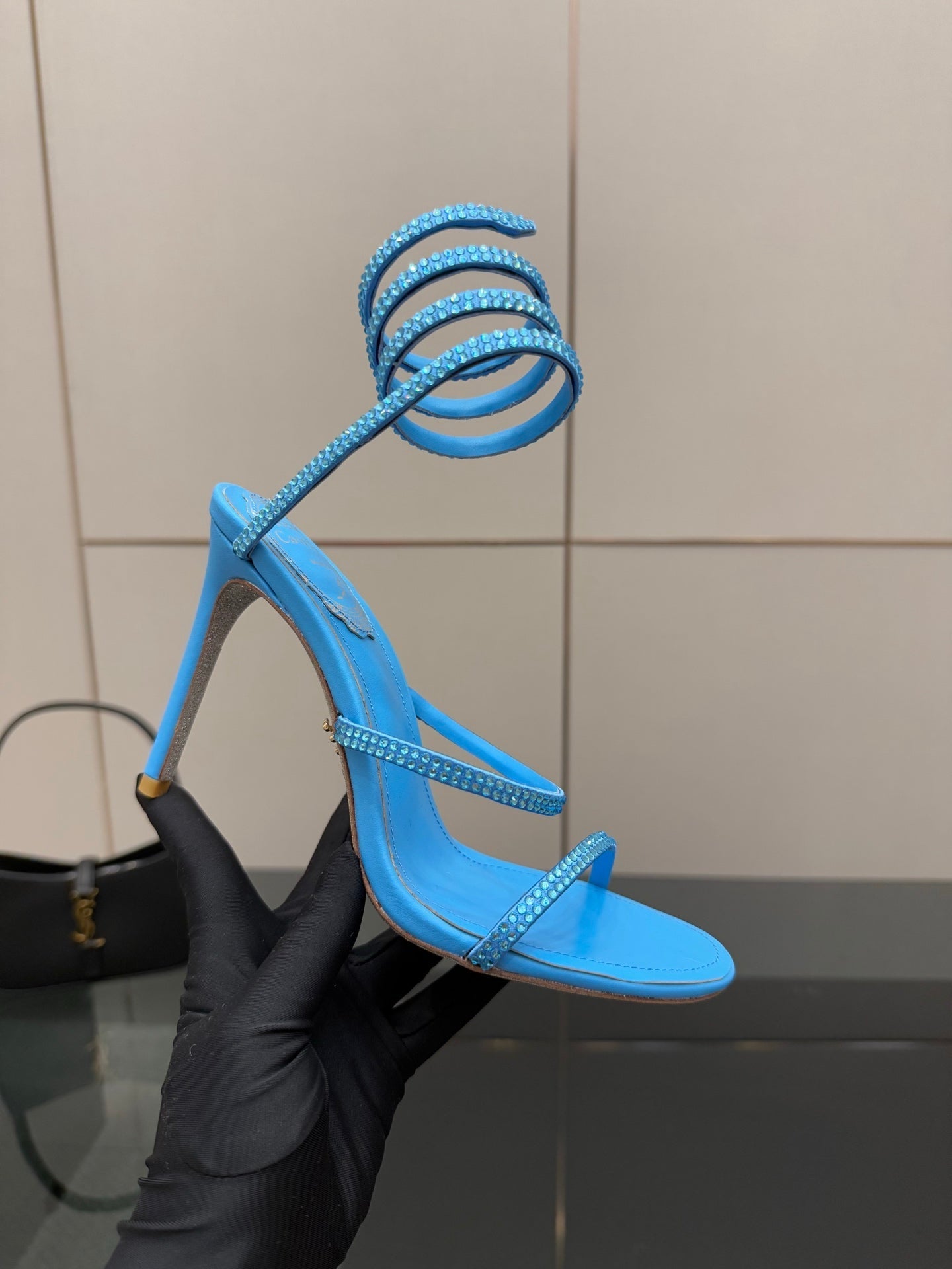 RC Sandals 9.5cm Blue Silk Creole Crystal Diamond 302603