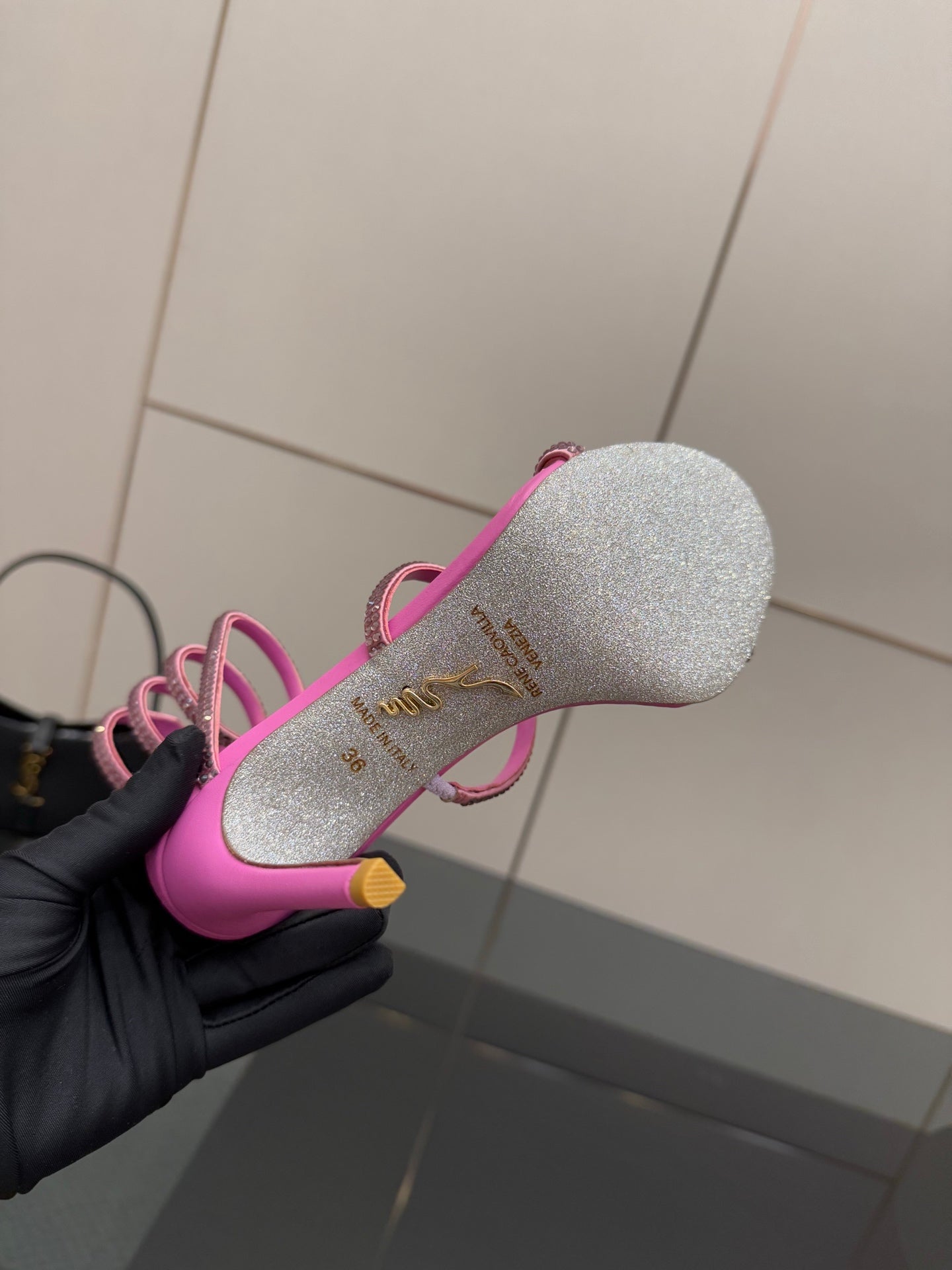 RC Sandals 9.5cm Dark Pink Silk Creole Crystal Diamond 302607
