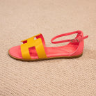 • Material: Sandal in calfskin with straight cut edges, "H" cut-out detail and thin ankle strap.