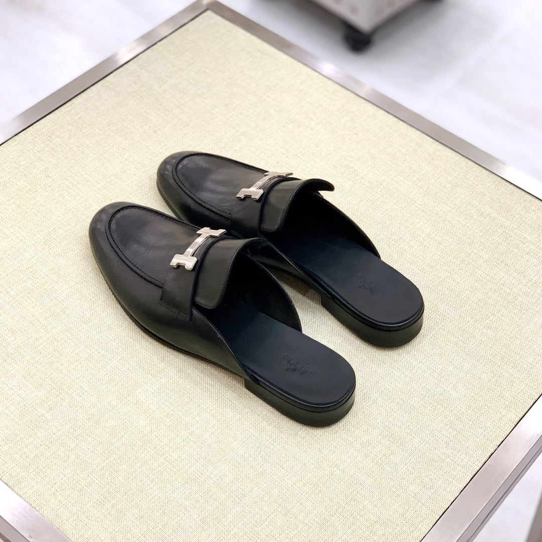 HM Men's Mule Black Calfskin 539720
