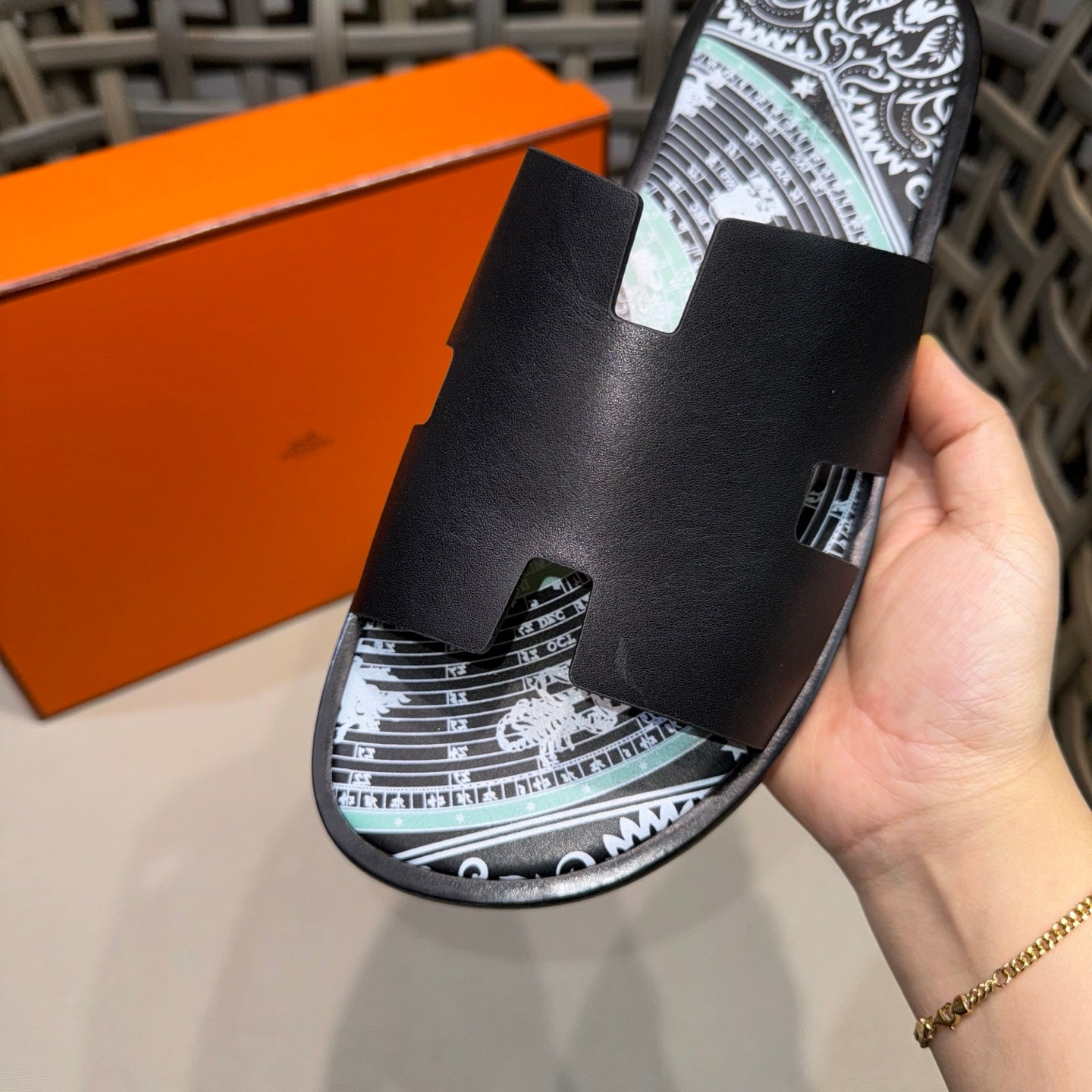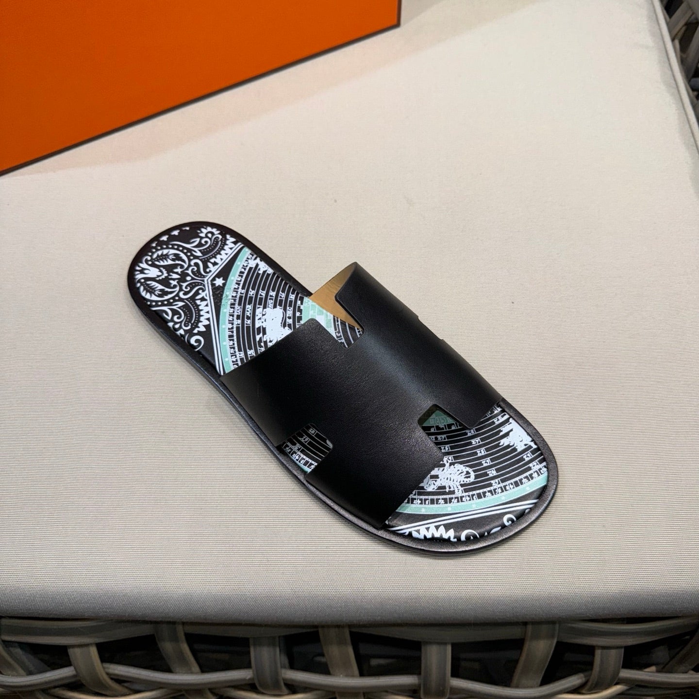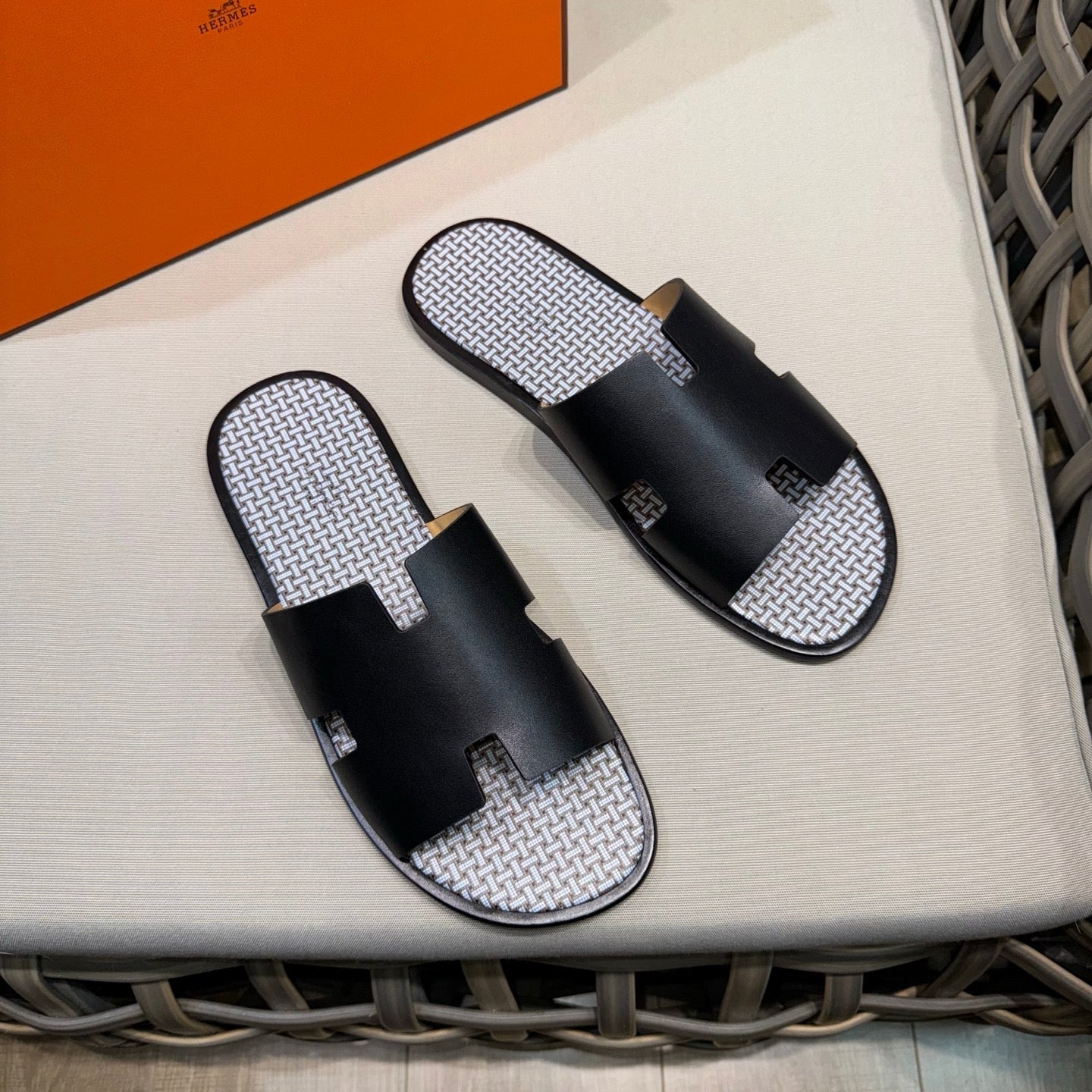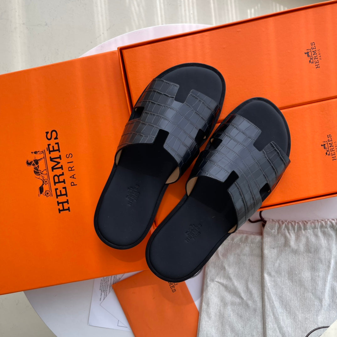 HM Men's Chypre Slide Black Calfskin 538596