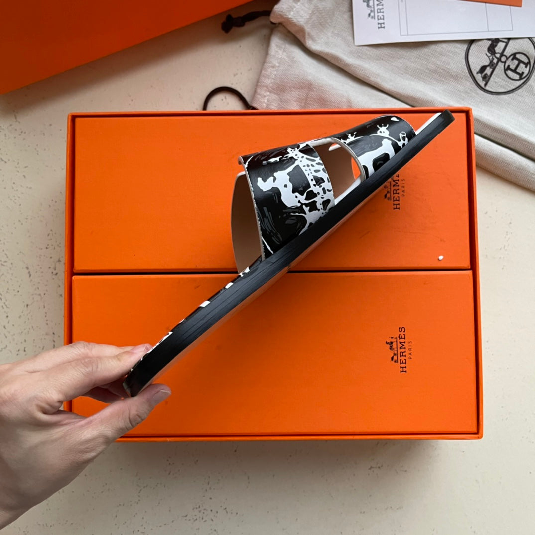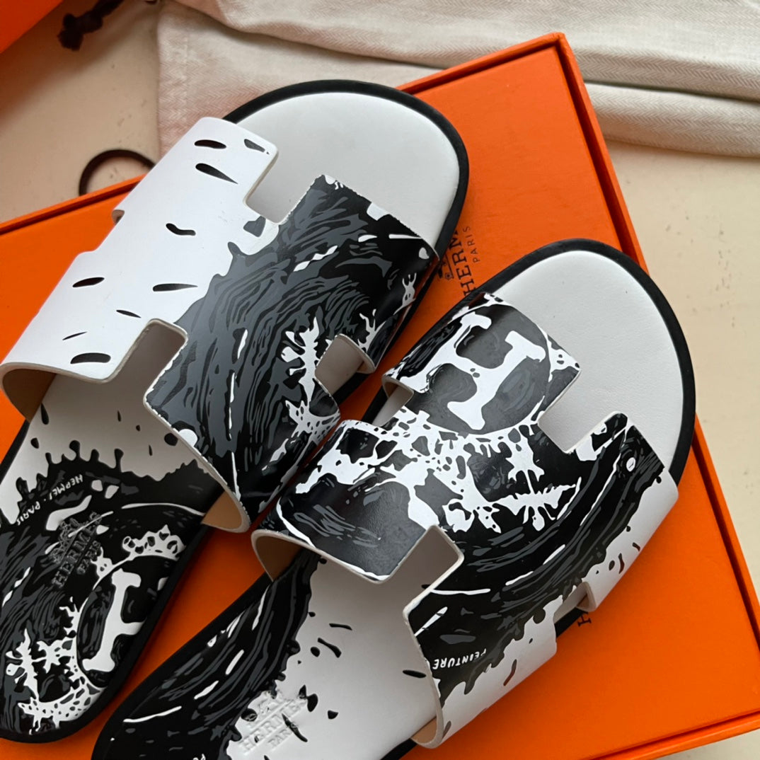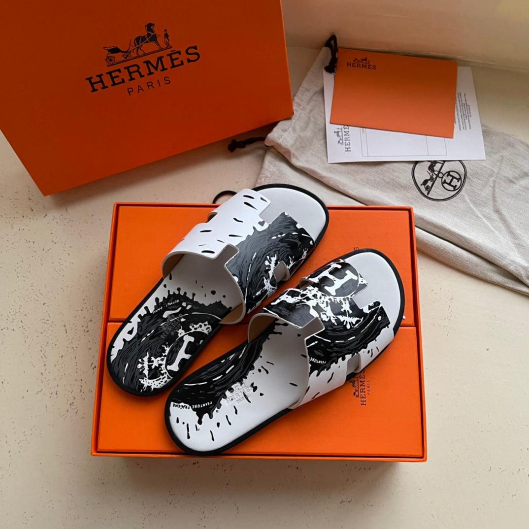 HM Men's Chypre Slide Black White Cowhide 540219