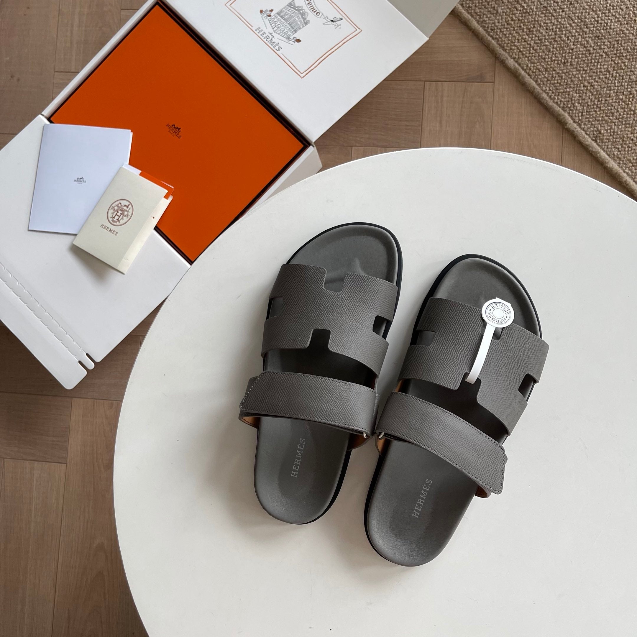 HM Men's Chypre Slide White Epsom Calfskin 538612