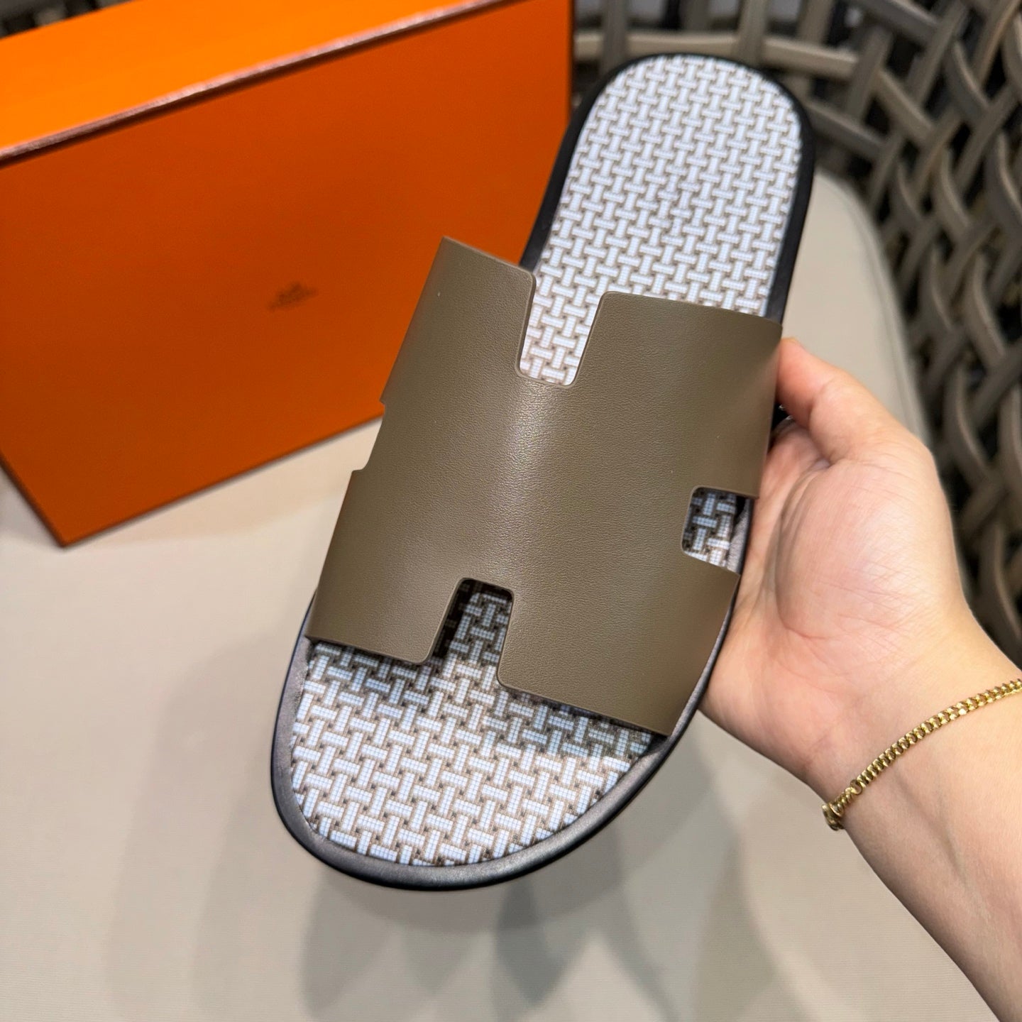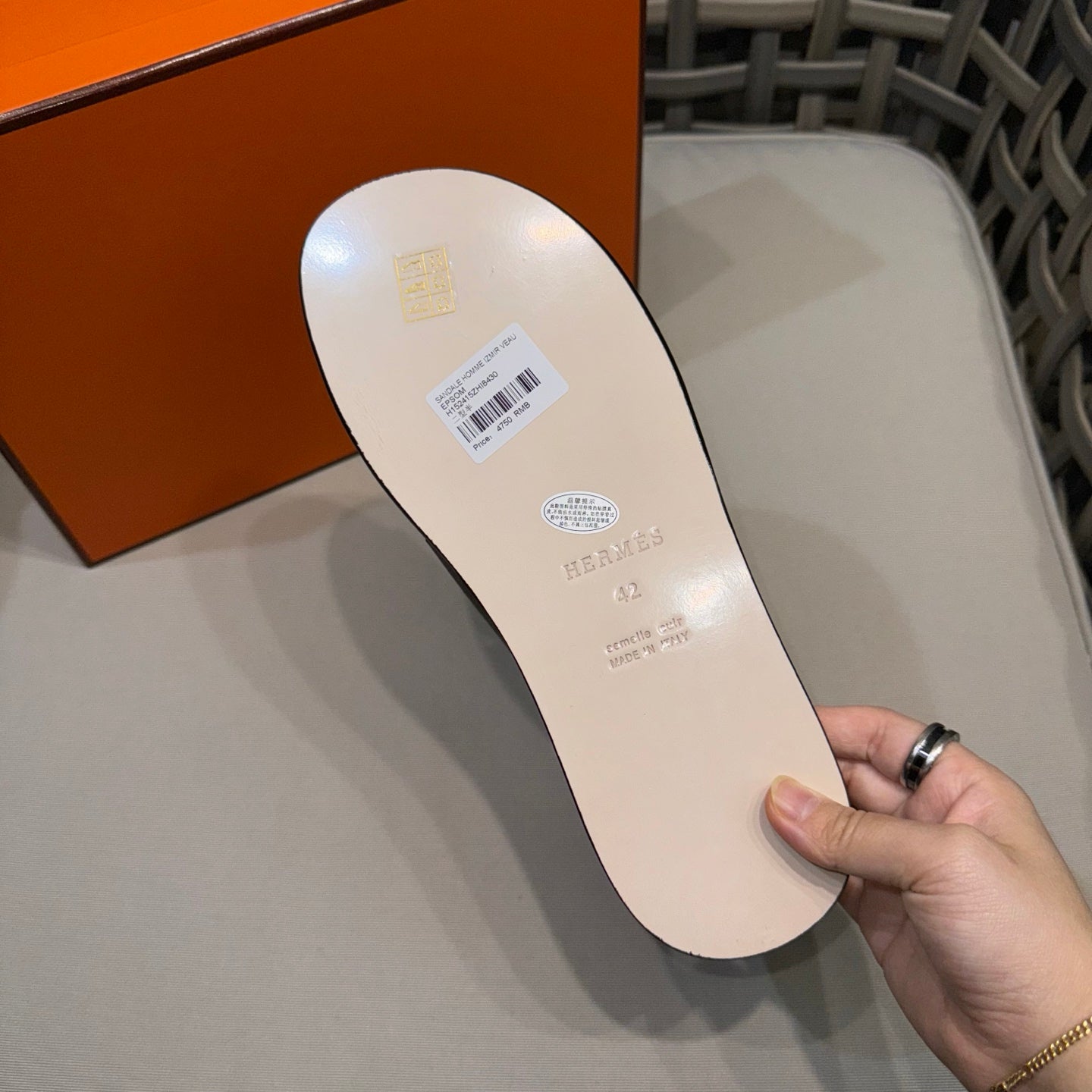 HM Men's Slide Beige Cowhide 544092