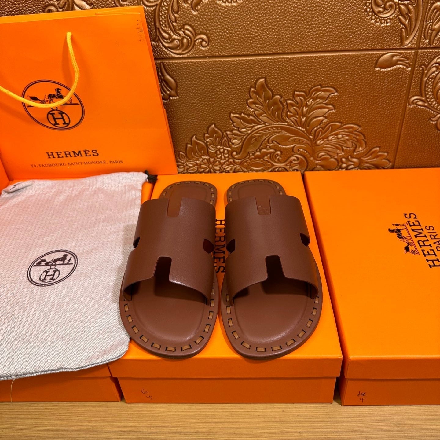 HM Men's Chypre Slide Brown Calfskin 538602