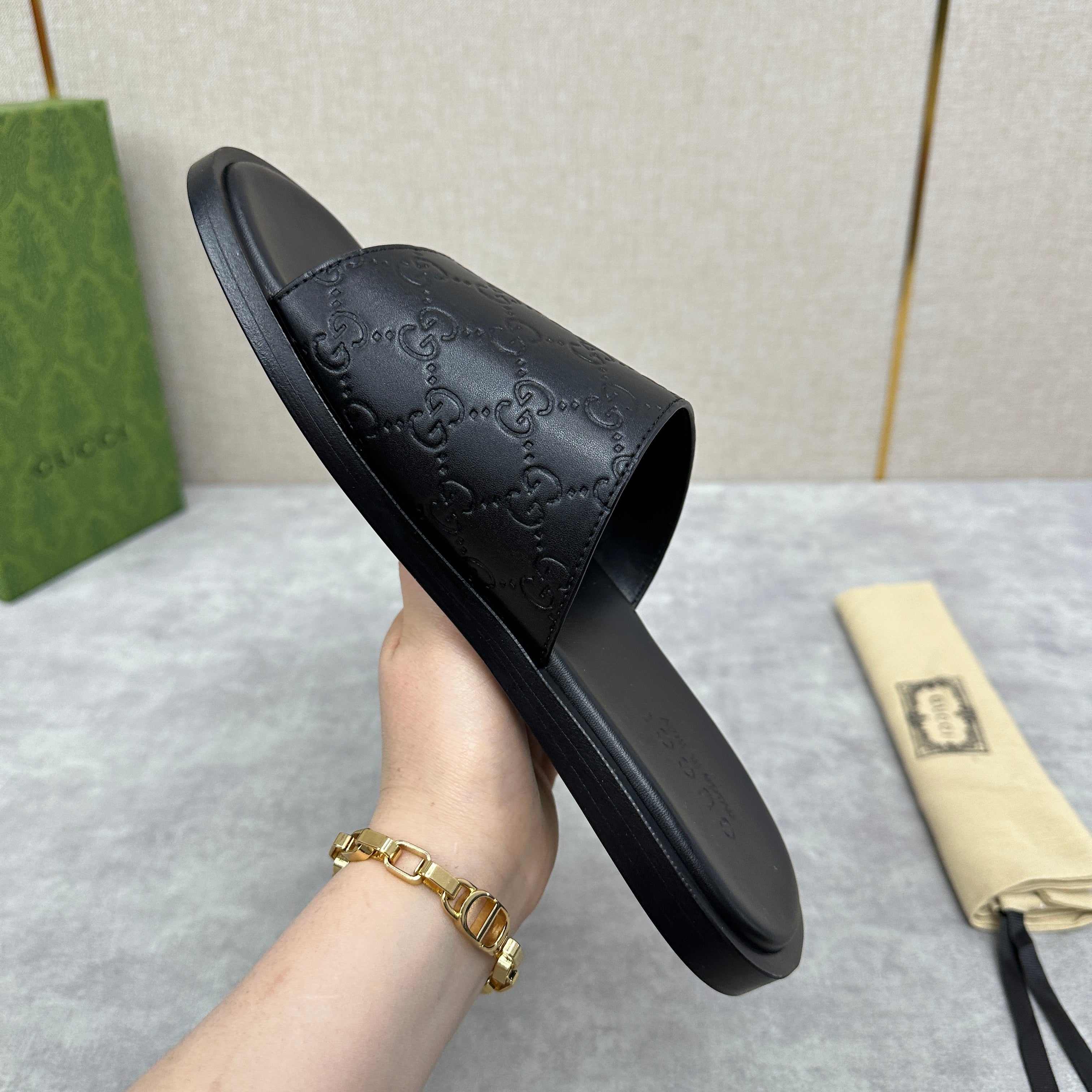 GG Men's 25 Monogram Slide Black Calfskin 540246