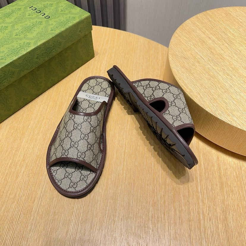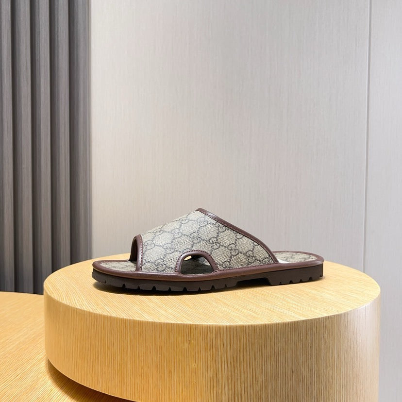 GG Men's Sandals Slide Brown Canvas 558134