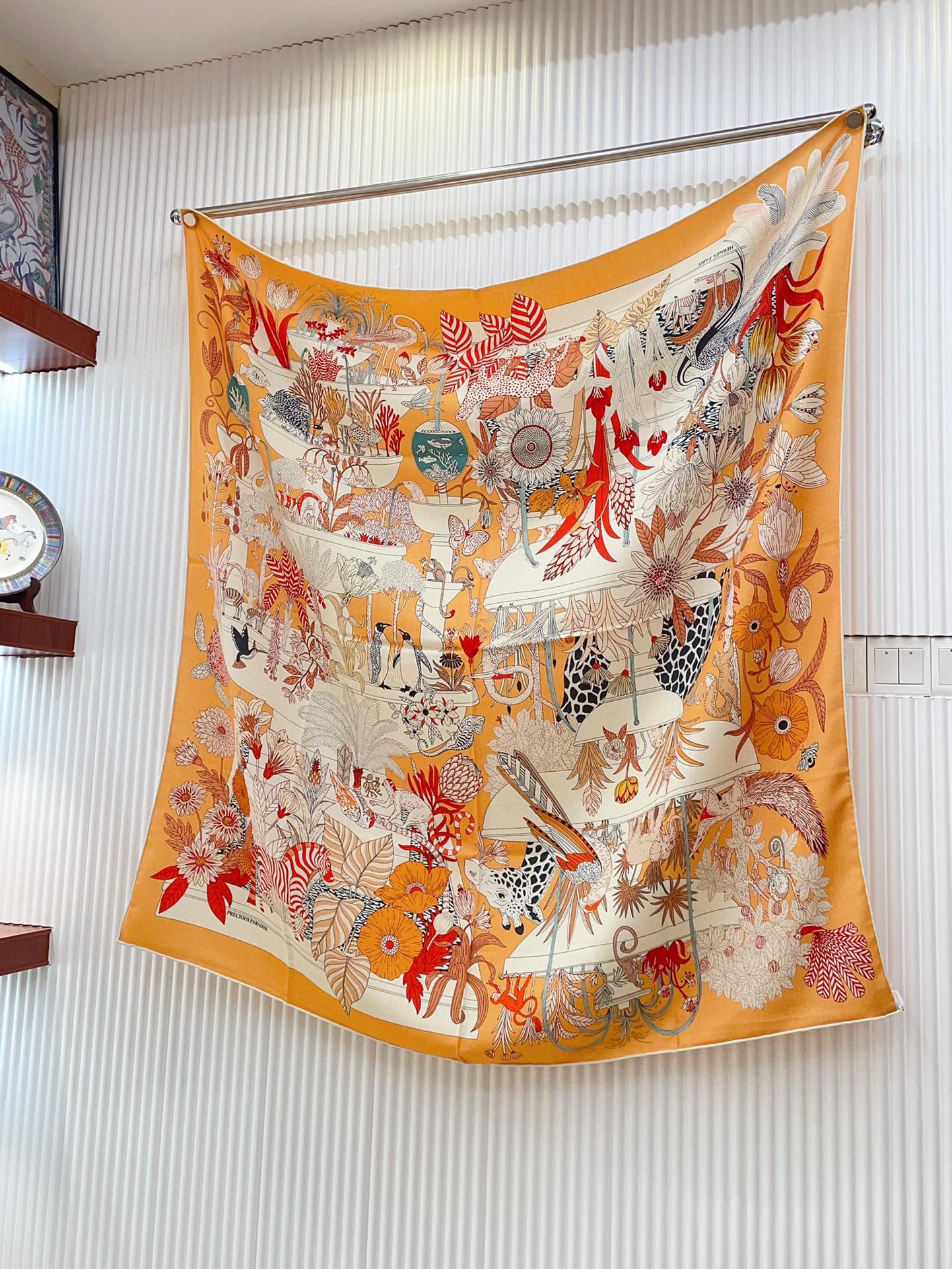 Retourala Nature Hermes Scarf 140 CM White Black Colorful Silk