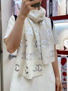 CC Scarf 190 CM In White Logo Print Cashmere 401169