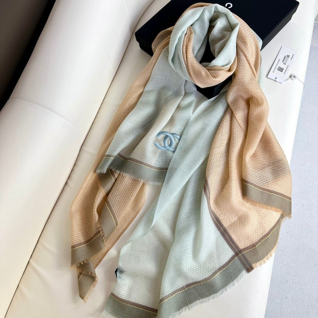 CC Scarf 200 CM In Grey Blue Mix Beige Cashmere Silk 390938