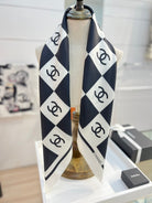 CC Square Scarf 90 CM In Black And White Plaid Silk Twill 288742