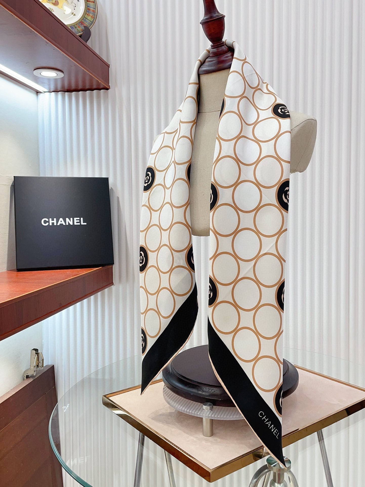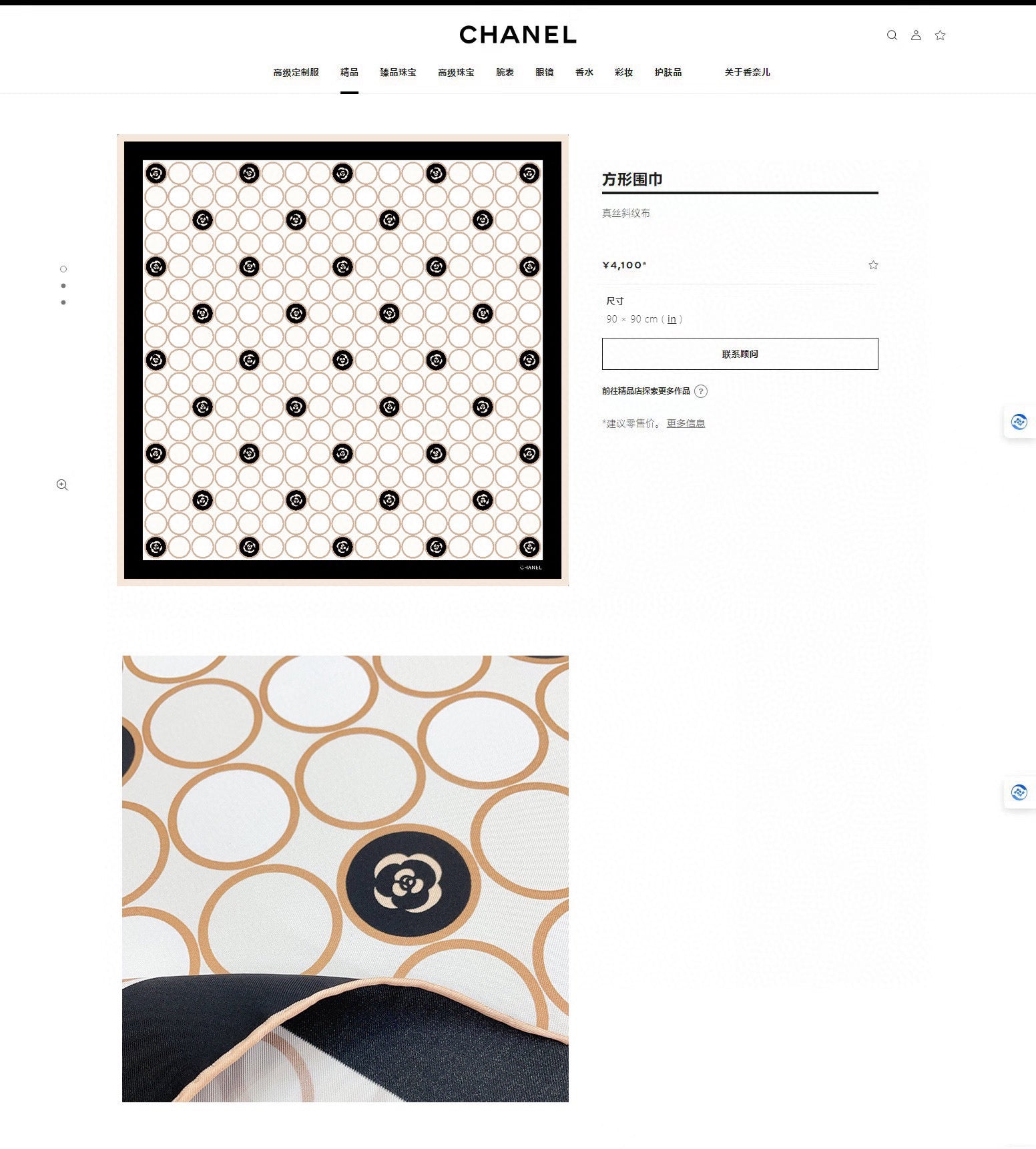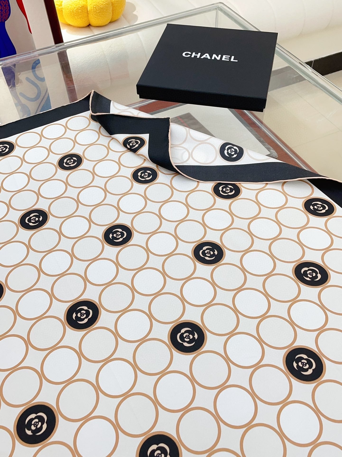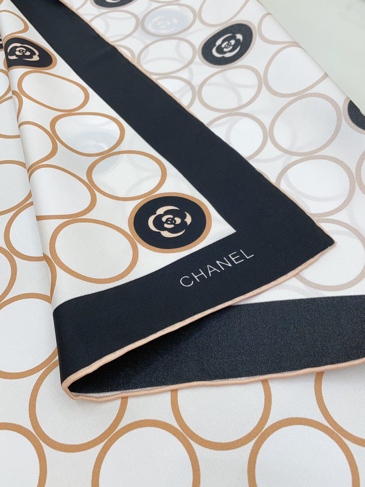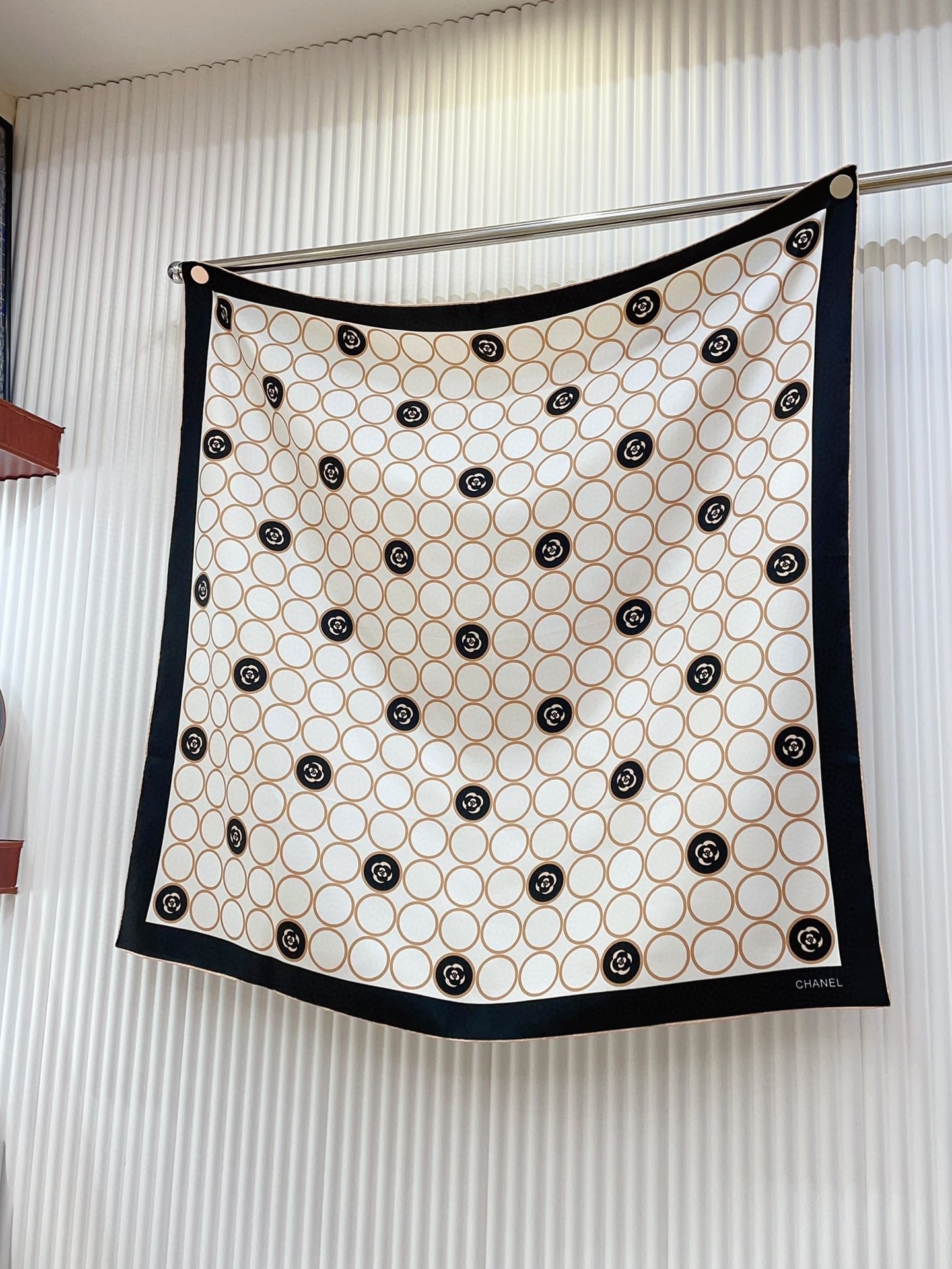 CC Square Scarf 90 CM In White Beige Mix Black Silk Twill 350414