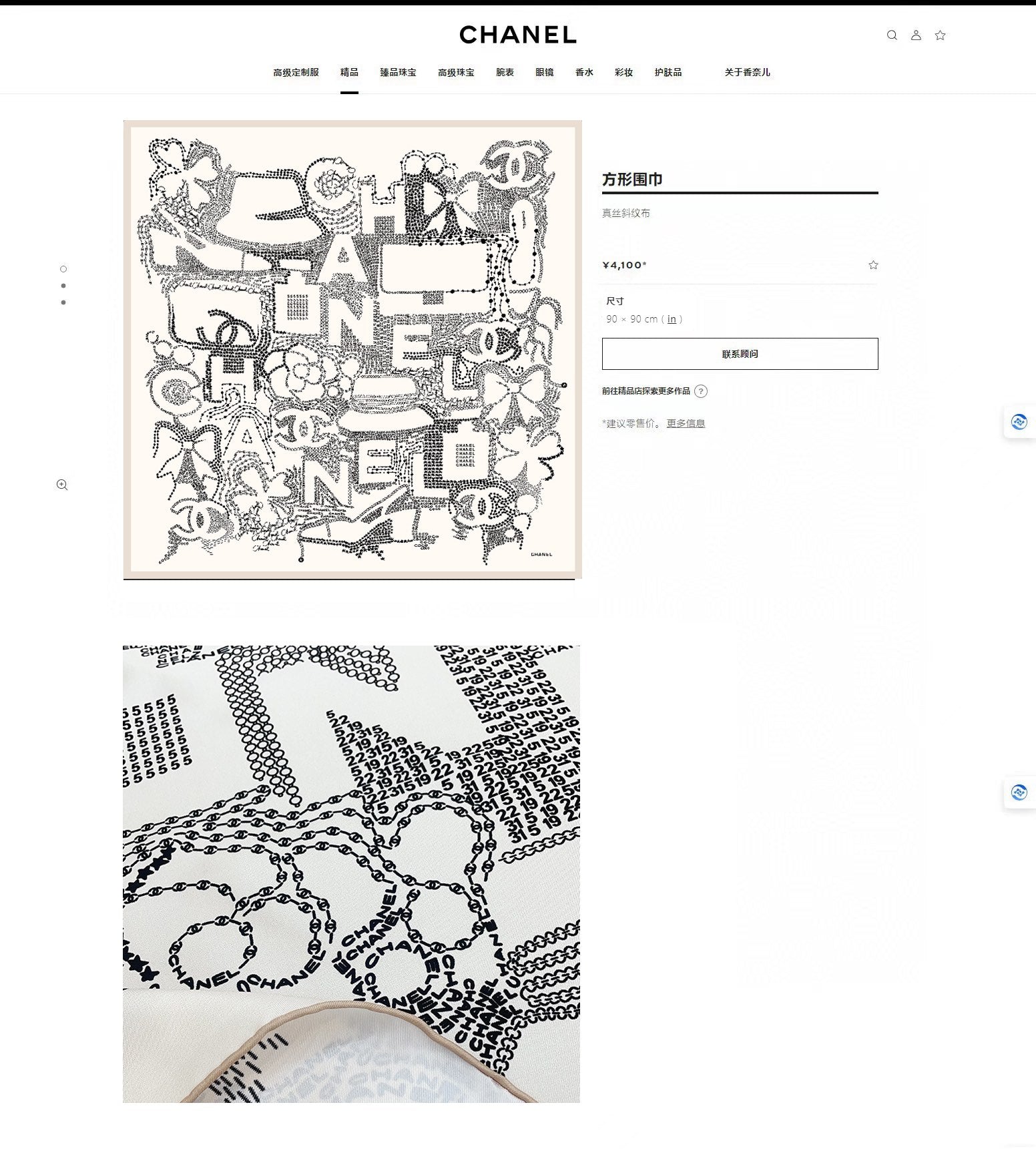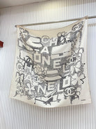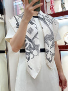CC Square Scarf 90 CM In White Black Silk Twill 198569