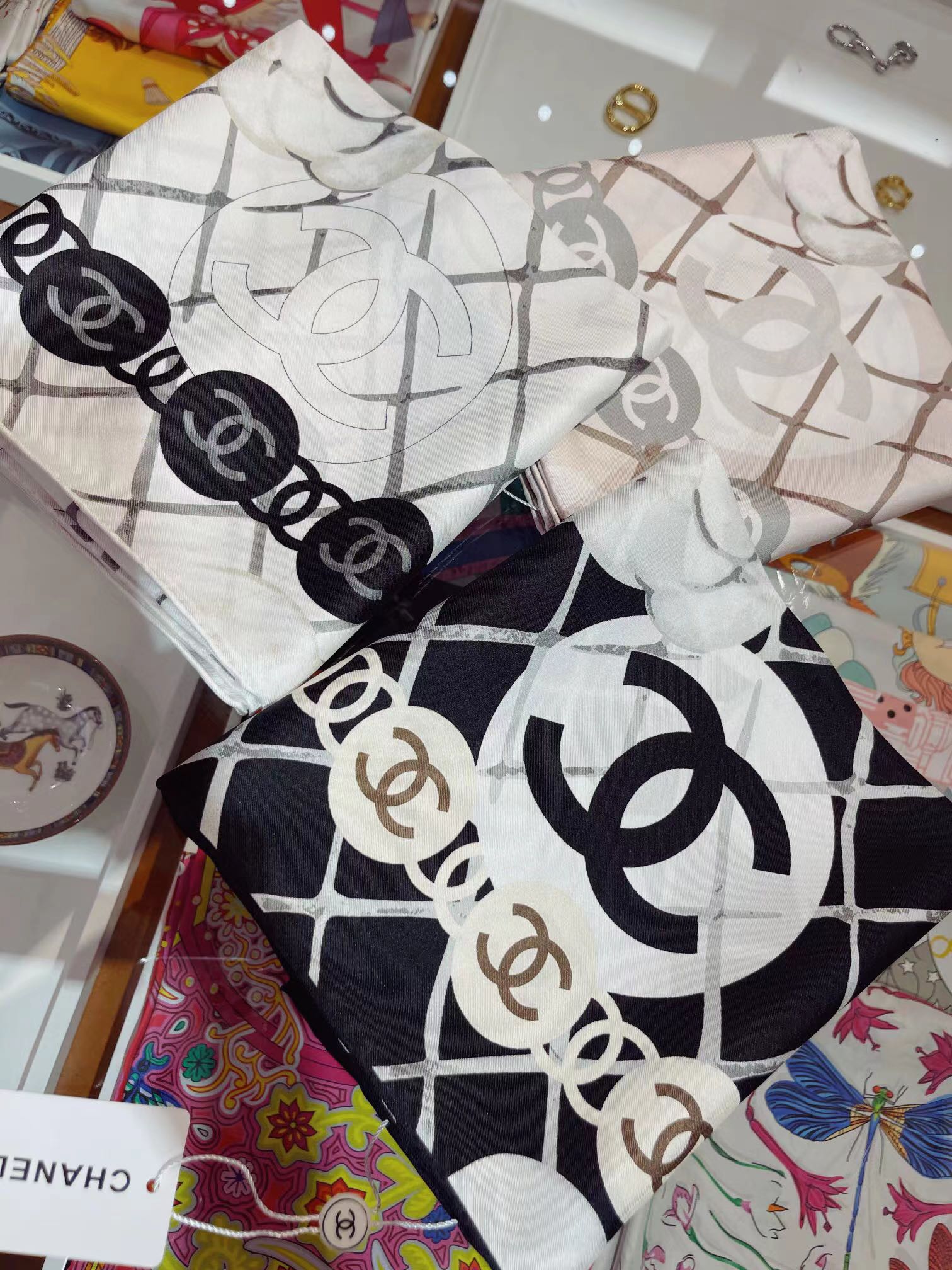 CC Square Scarf 90 CM In White Mix Black Camellia Print Silk Twill 288688