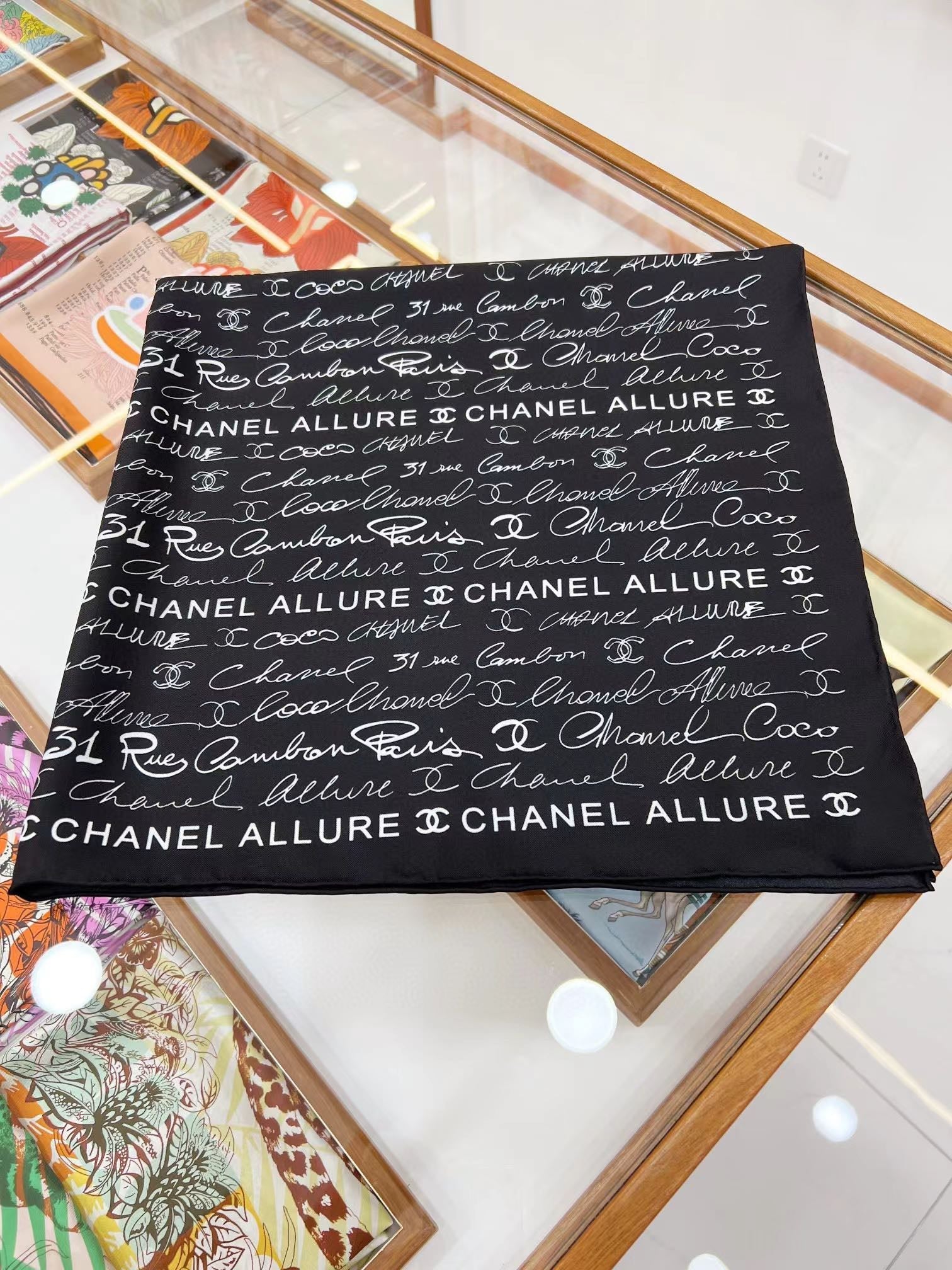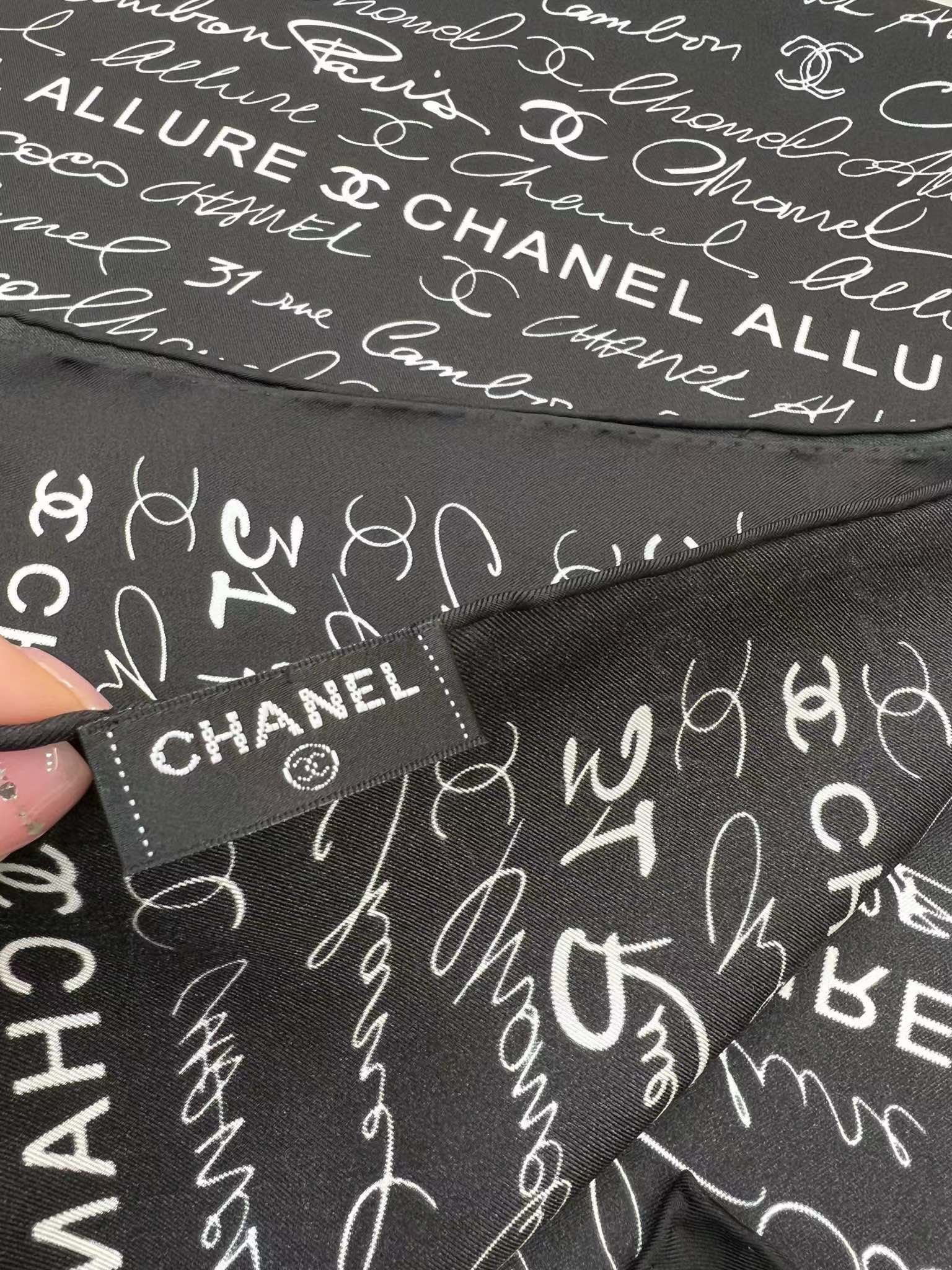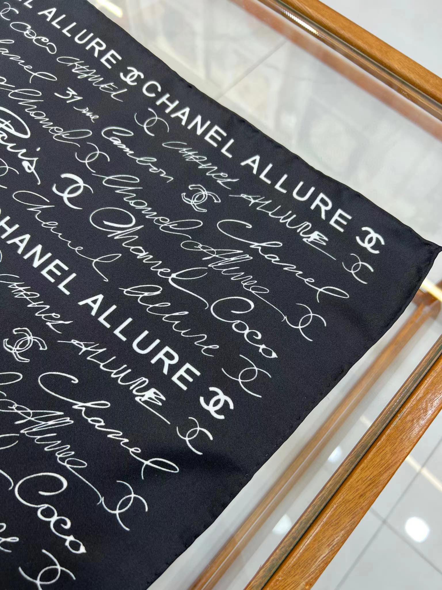 CC Square Scarf 90 CM In Black With White Text Silk 288695