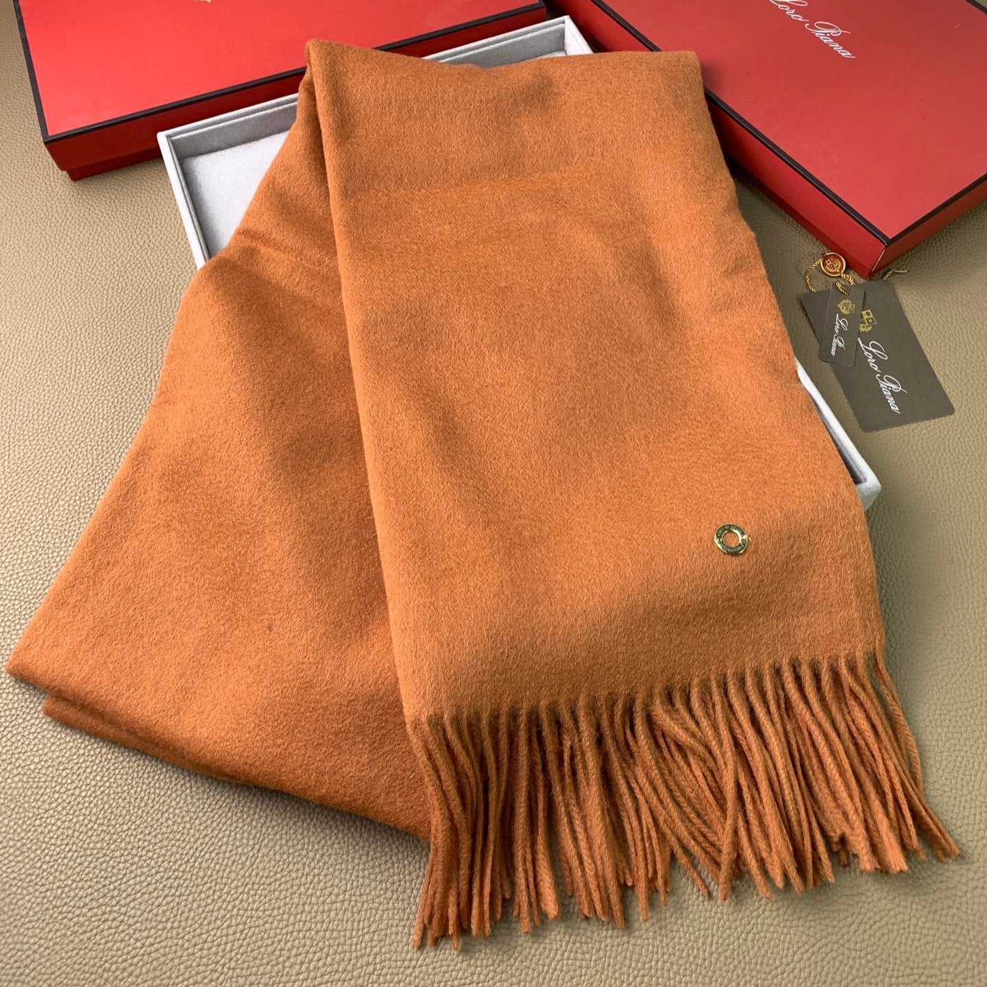 LP Grande Unita Scarf 200 CM In Brown Orange Cashmere 378391