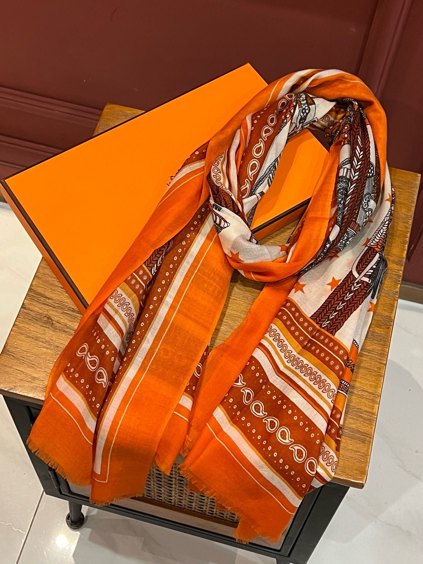 Selle De Dignitaire Bandana Shawl 200 CM In Orange Red Colorful Cashmere 265333
