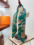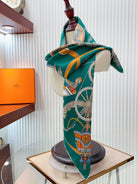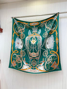 Stately Wheels Scarf 90 CM Dark Green Colorful Silk Twill 312875