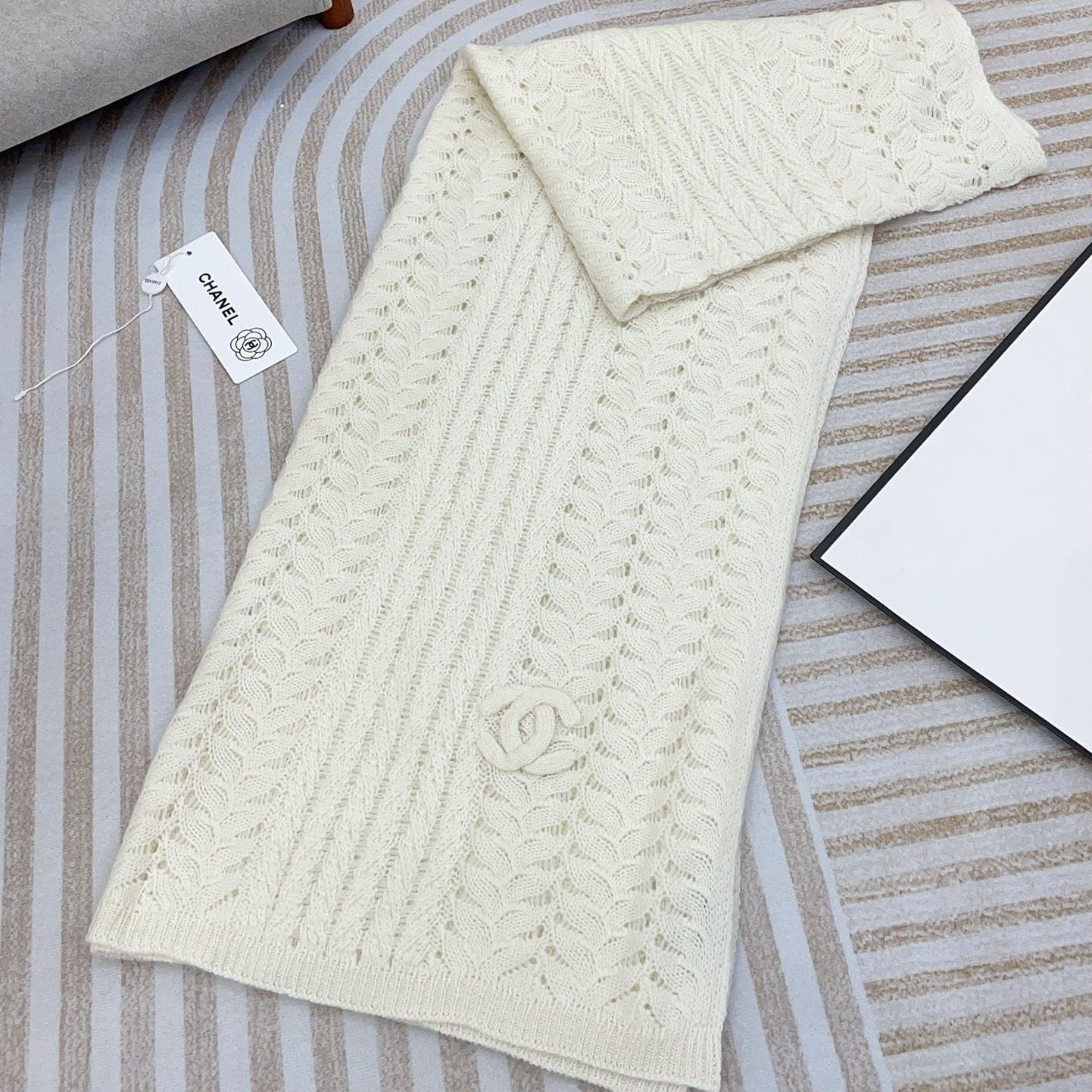CC Scarf 190 CM In White Logo Print Cashmere 401169