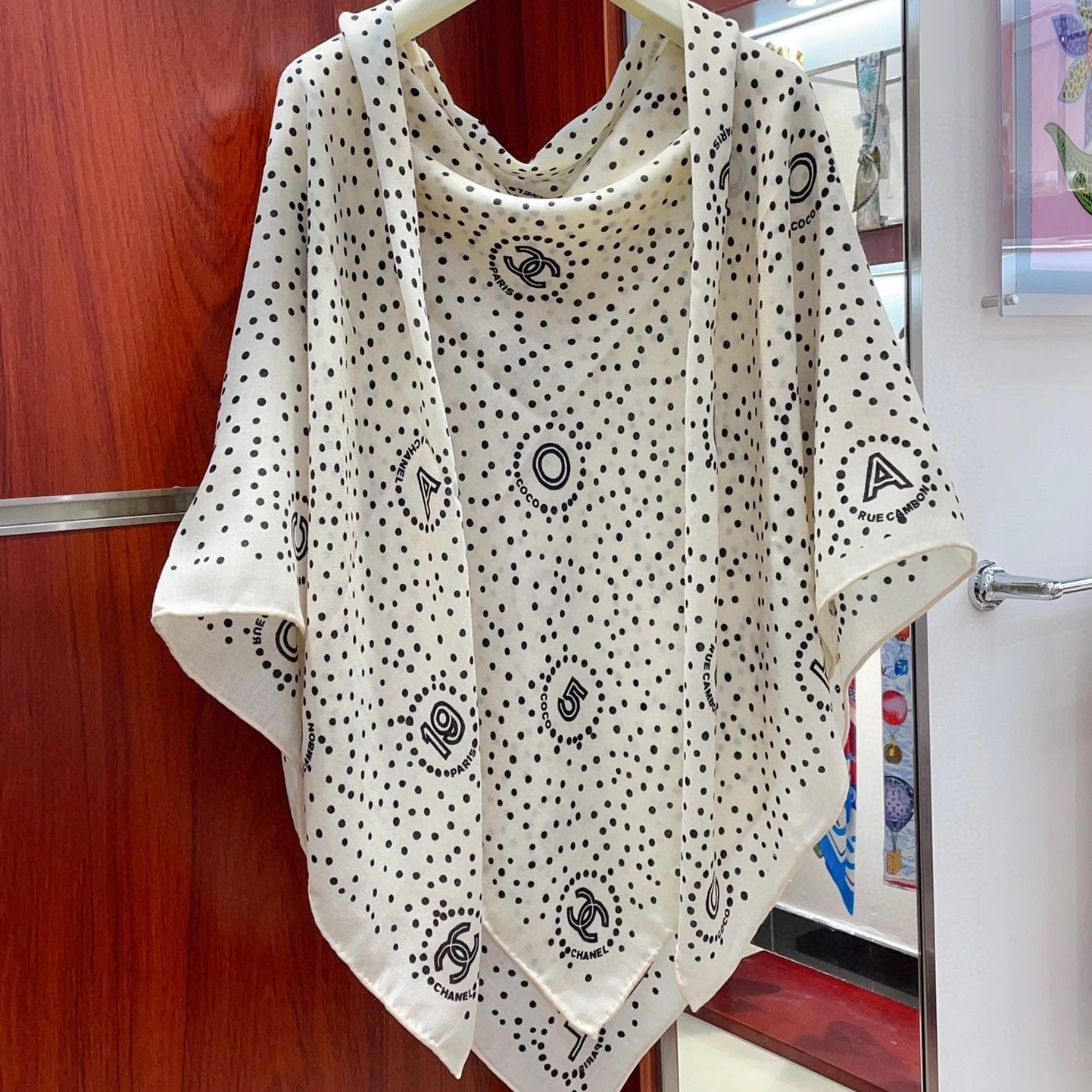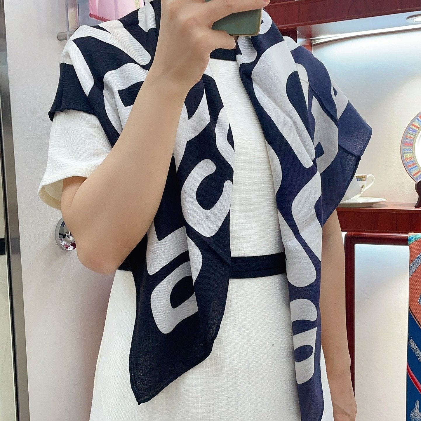 CC Square Scarf 140 CM In White Mix Black Silk 396374