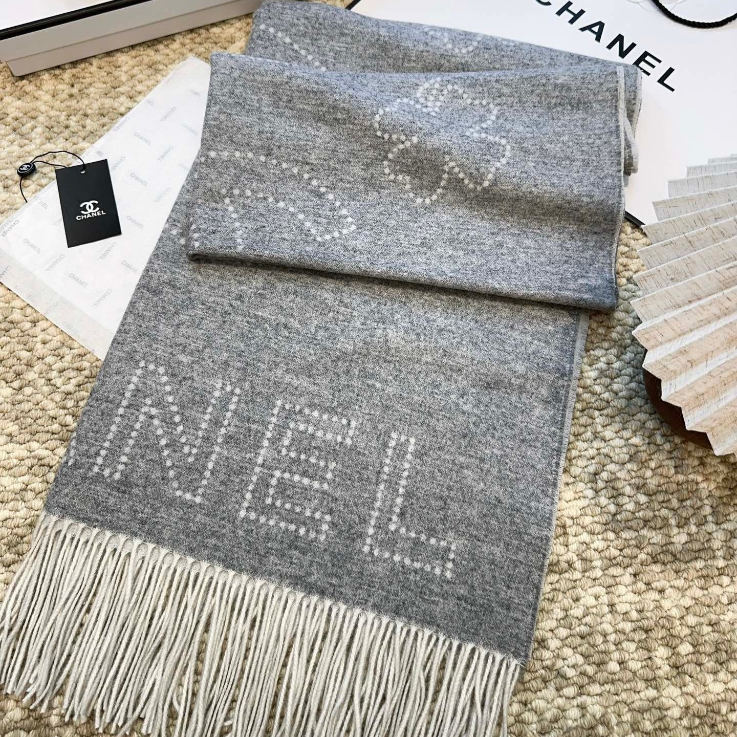 CC Scarf 190 CM In Grey Logo Print Cashmere 401170