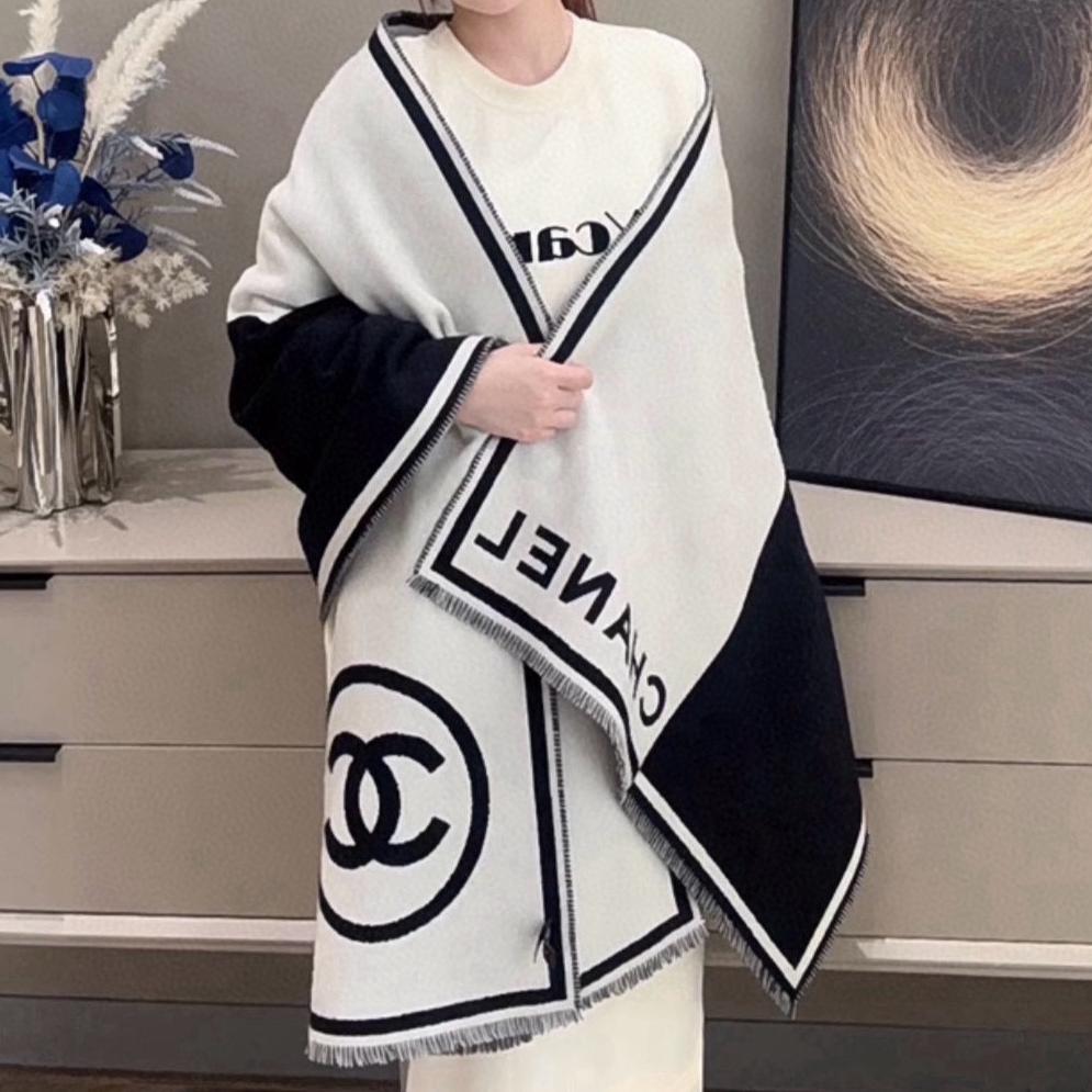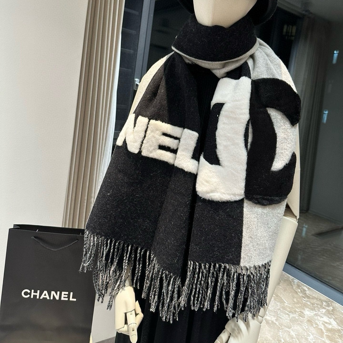 CC Scarf 190 CM In White Mix Black Cashmere And Wool 401998