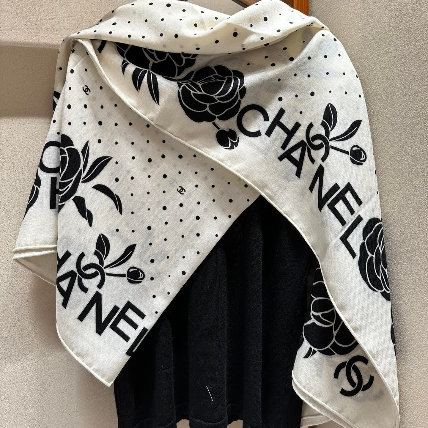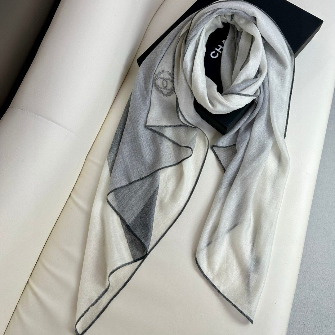 CC Scarf 180 CM In White Black Cashmere Silk 401133