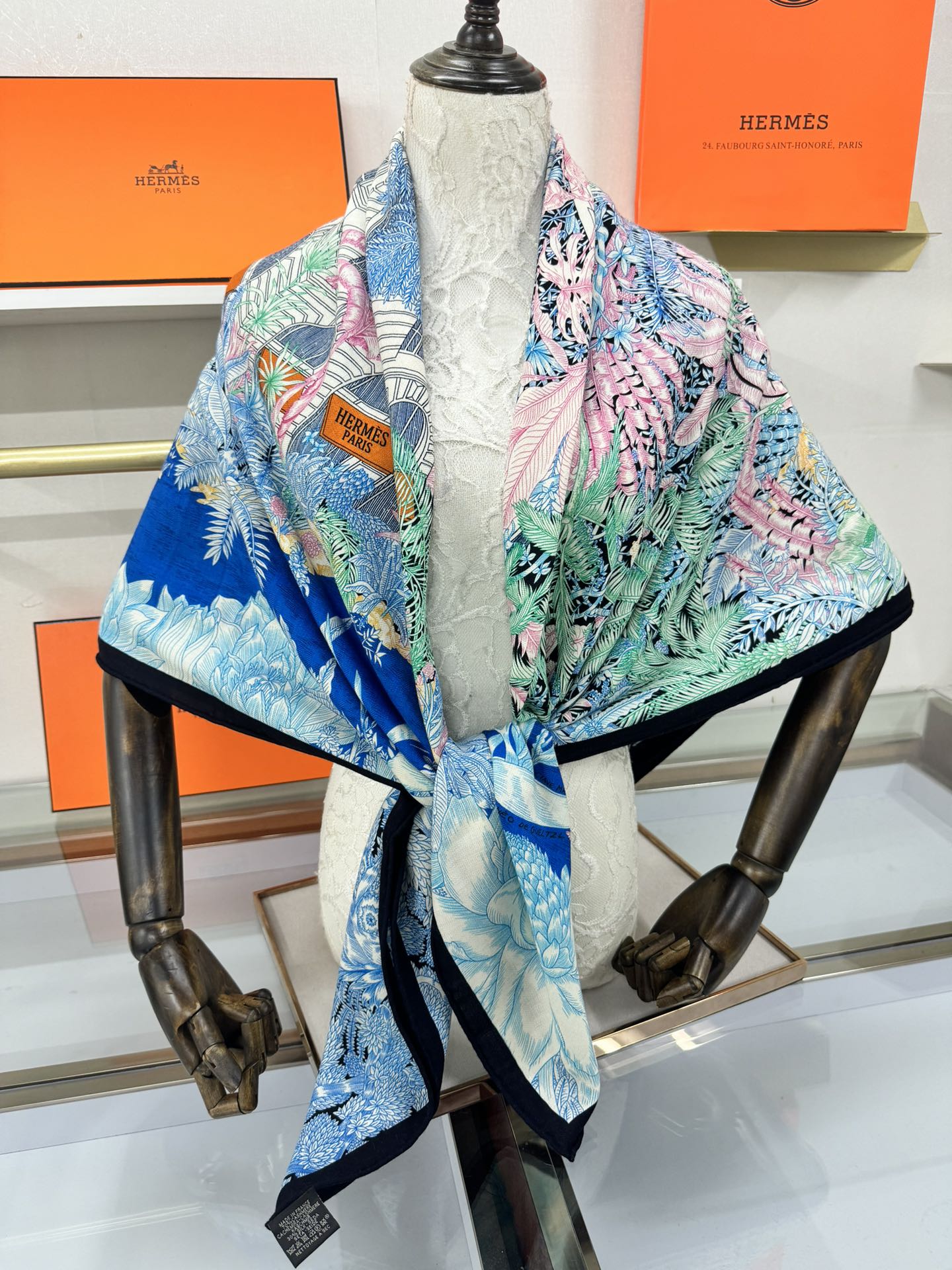 FAUBOURG TROPICAL SHAWL 140 CM IN COLORFUL CASHMERE AND SILK 379771